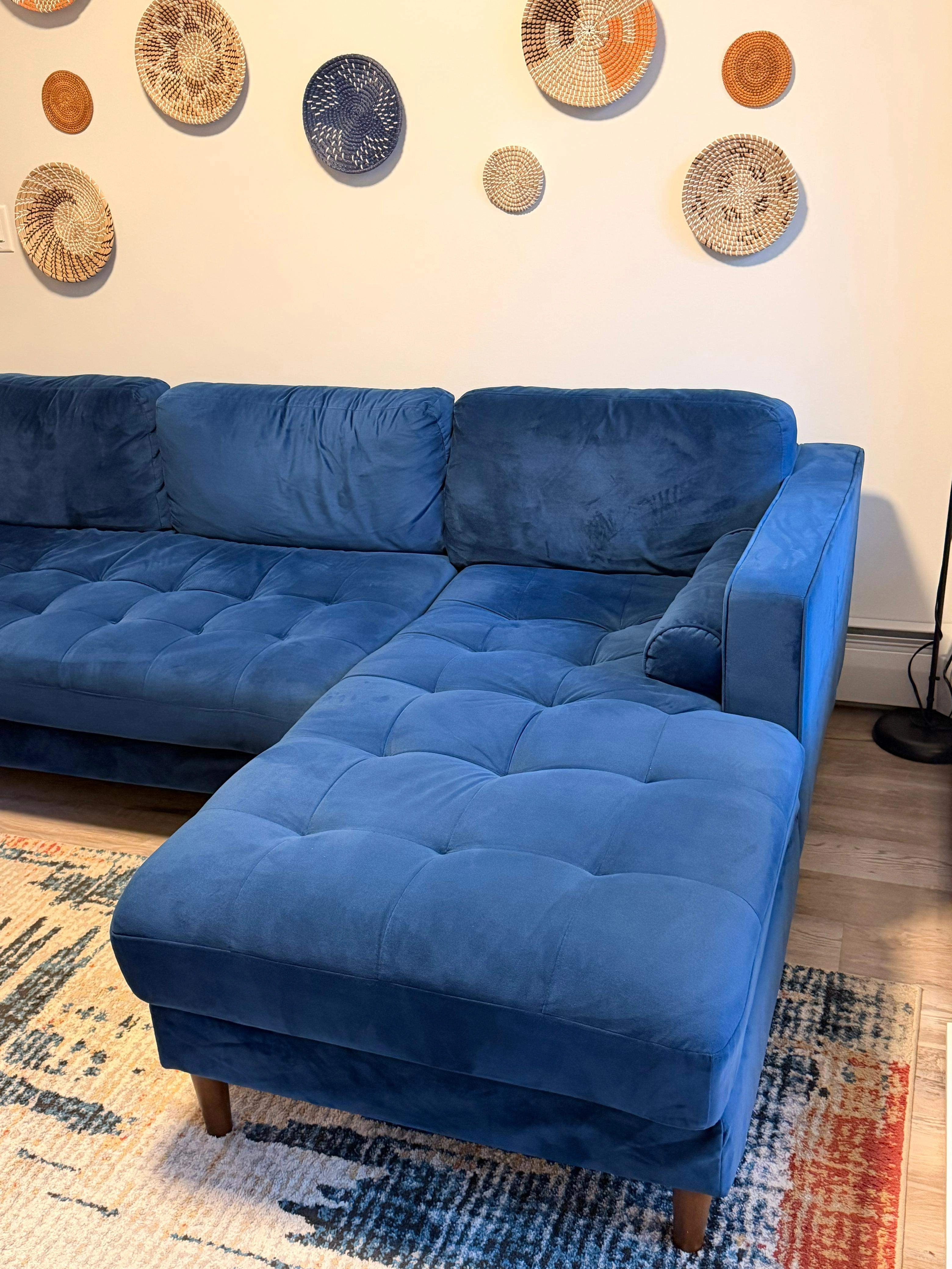 Stunning Navy Blue Velvet Sectional – Mid-Century Modern Style