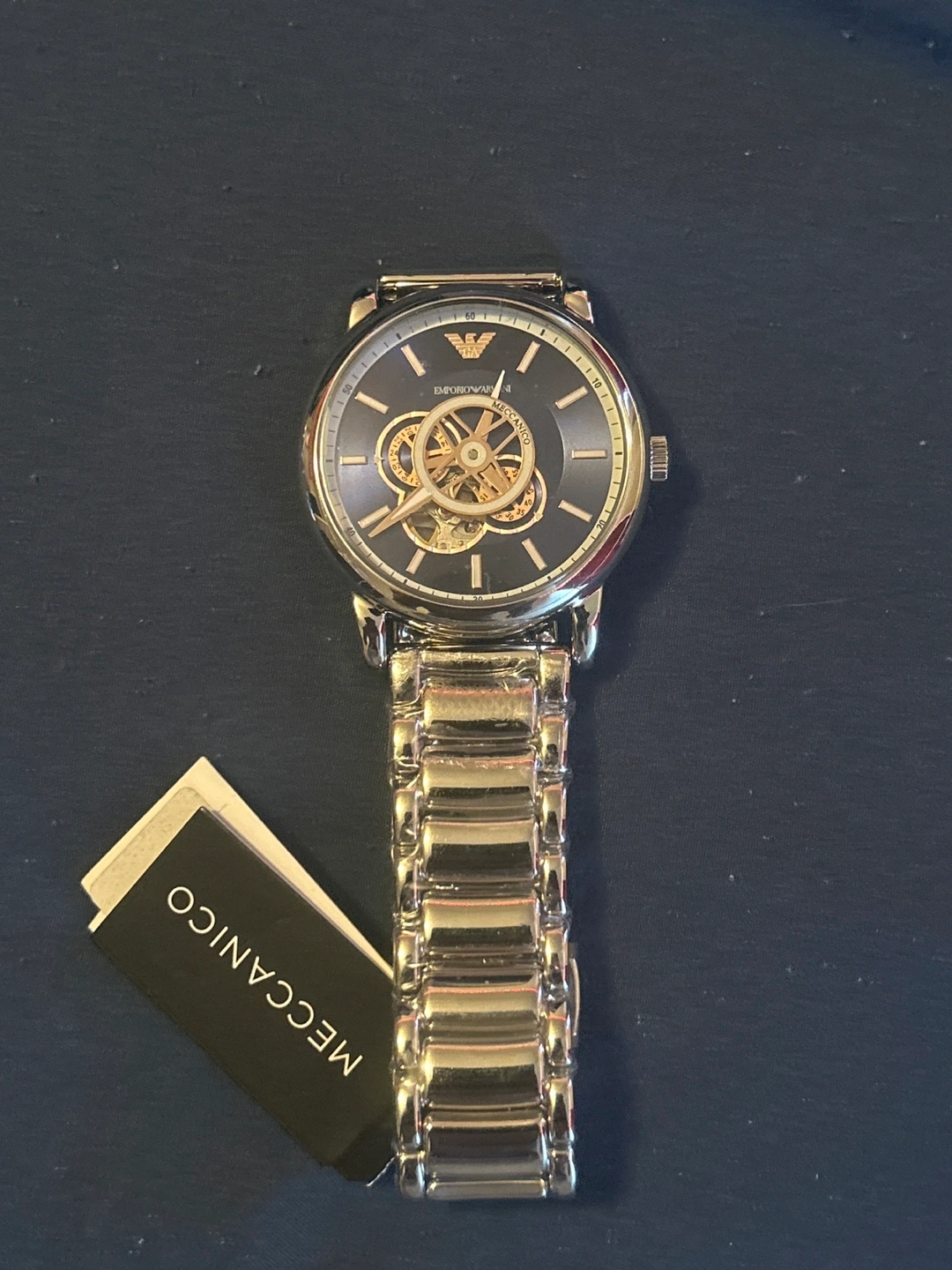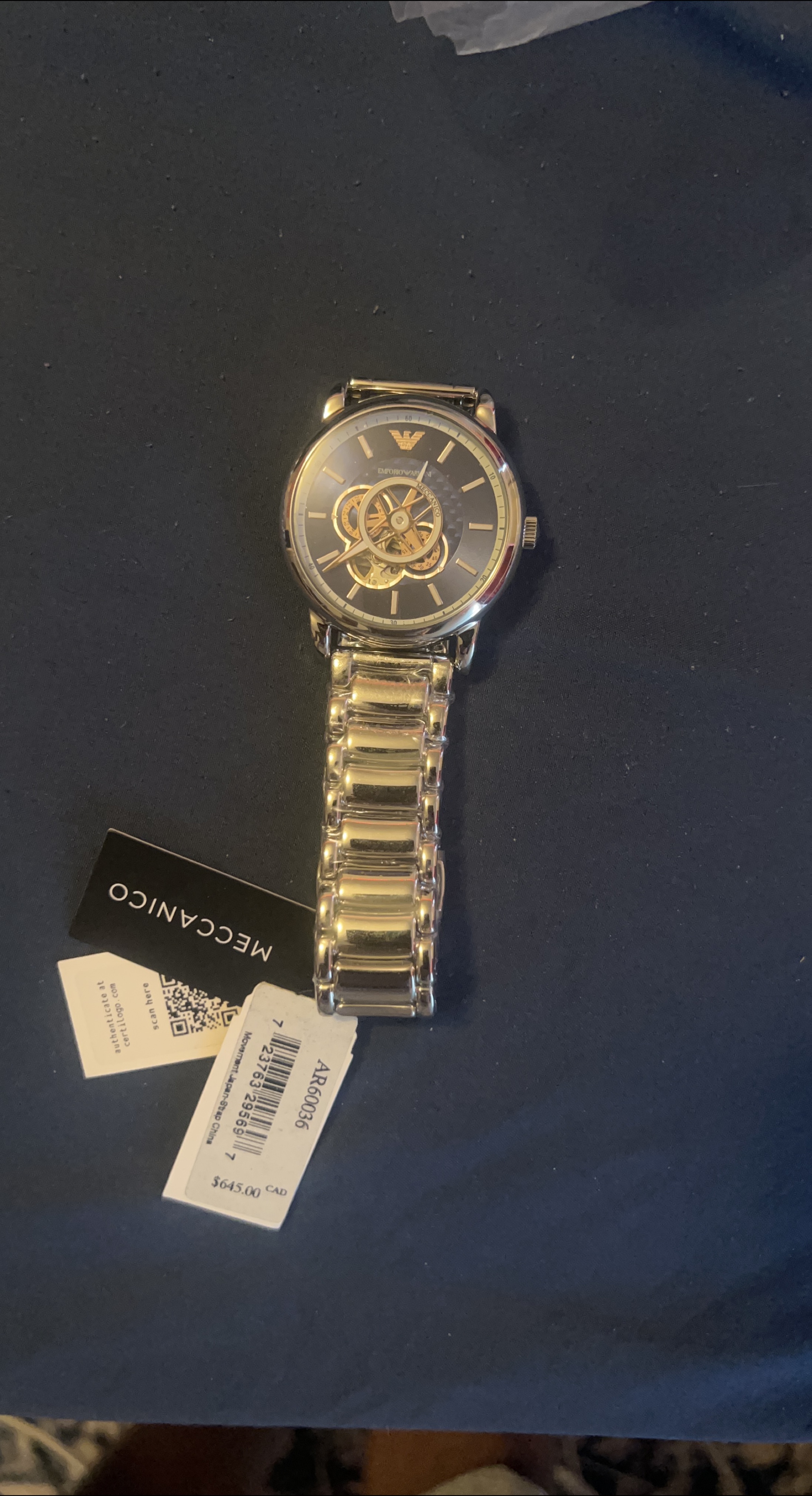 Selling an Emporio Armani Meccanico automatic watch! It features a sleek design and automatic movement. Originally bought for $645 CAD (No box)