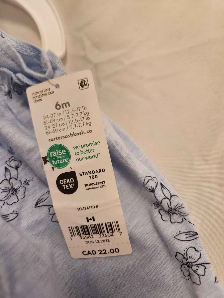 Long sleeve pink outfit with matching baby socks (size = newborn, NB) PLUS short sleeve blue summer outfit with matching bandana (size = 6 months, 6M, 3-6)