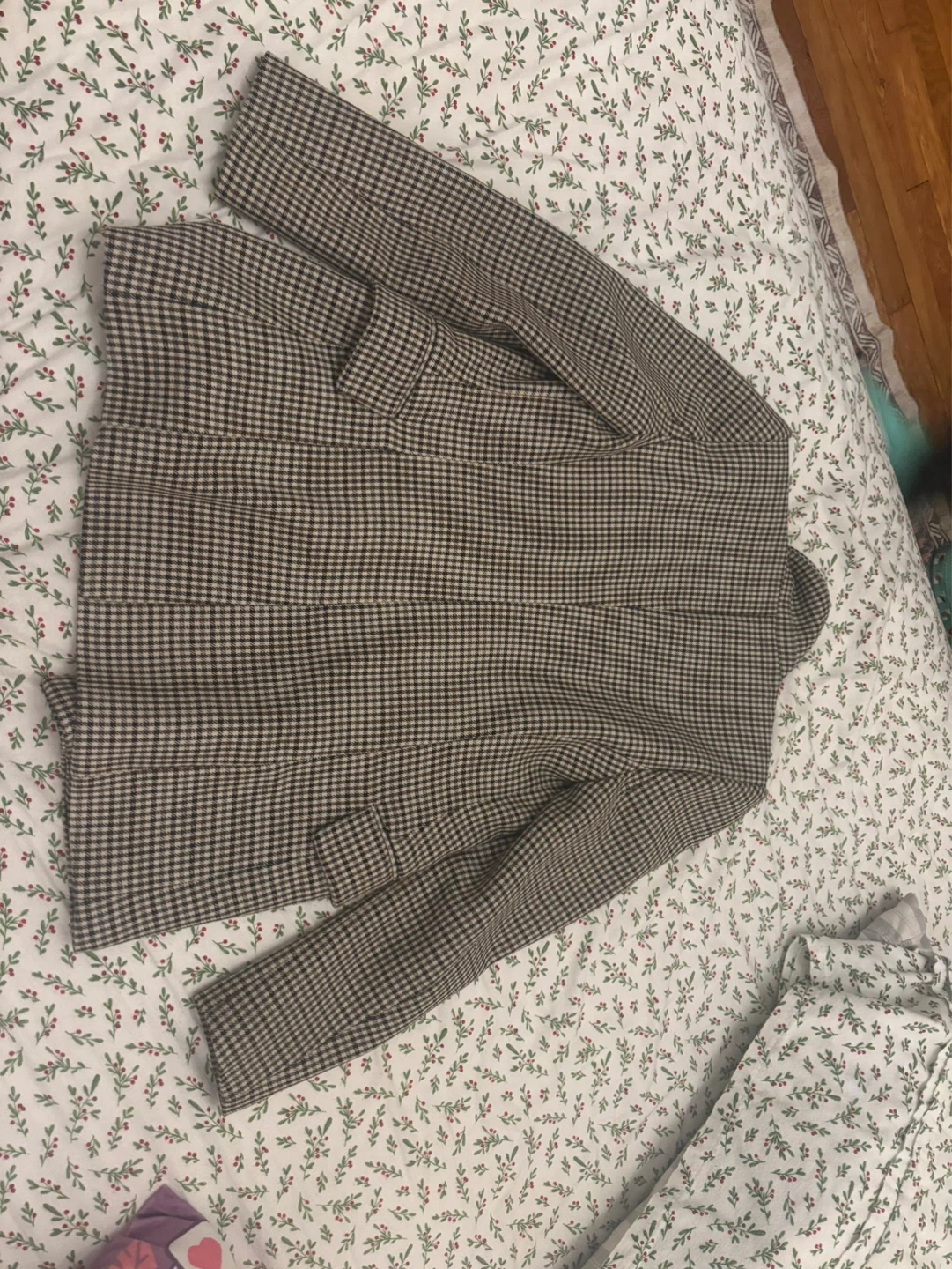 Classic houndstooth pattern blazer from Zara. Double-breasted design with two button closure. This blazer is made in Turkey. Size S. Perfect for adding a polished touch to any outfit!