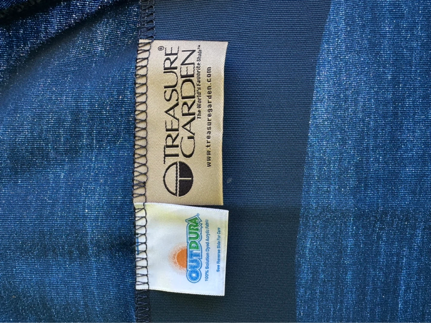 Treasure Garden Octagonal patio umbrella. It features a crank mechanism for easy opening and closing. Measures approximately 9 feet in diameter when open.