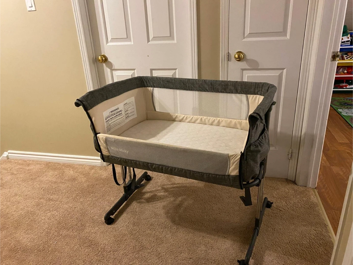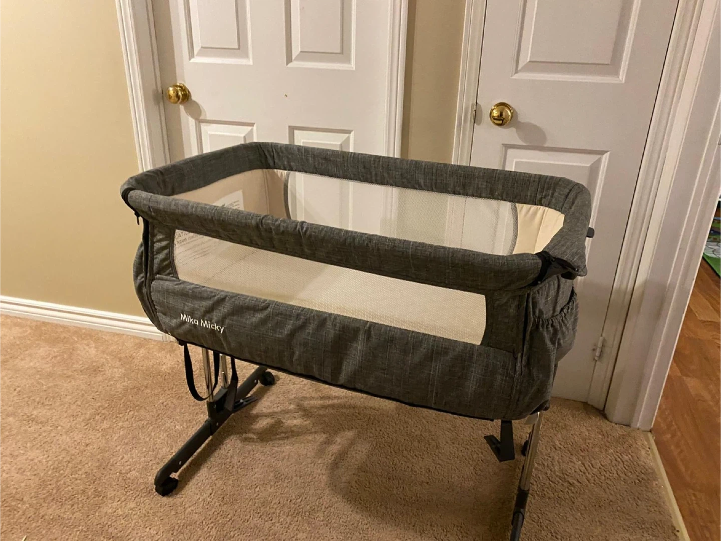 This Mika Micky bassinet is perfect for keeping your little one close by. It features a comfortable mattress and breathable mesh sides for good airflow. The bassinet's frame is sturdy and adjustable, making it easy to position.