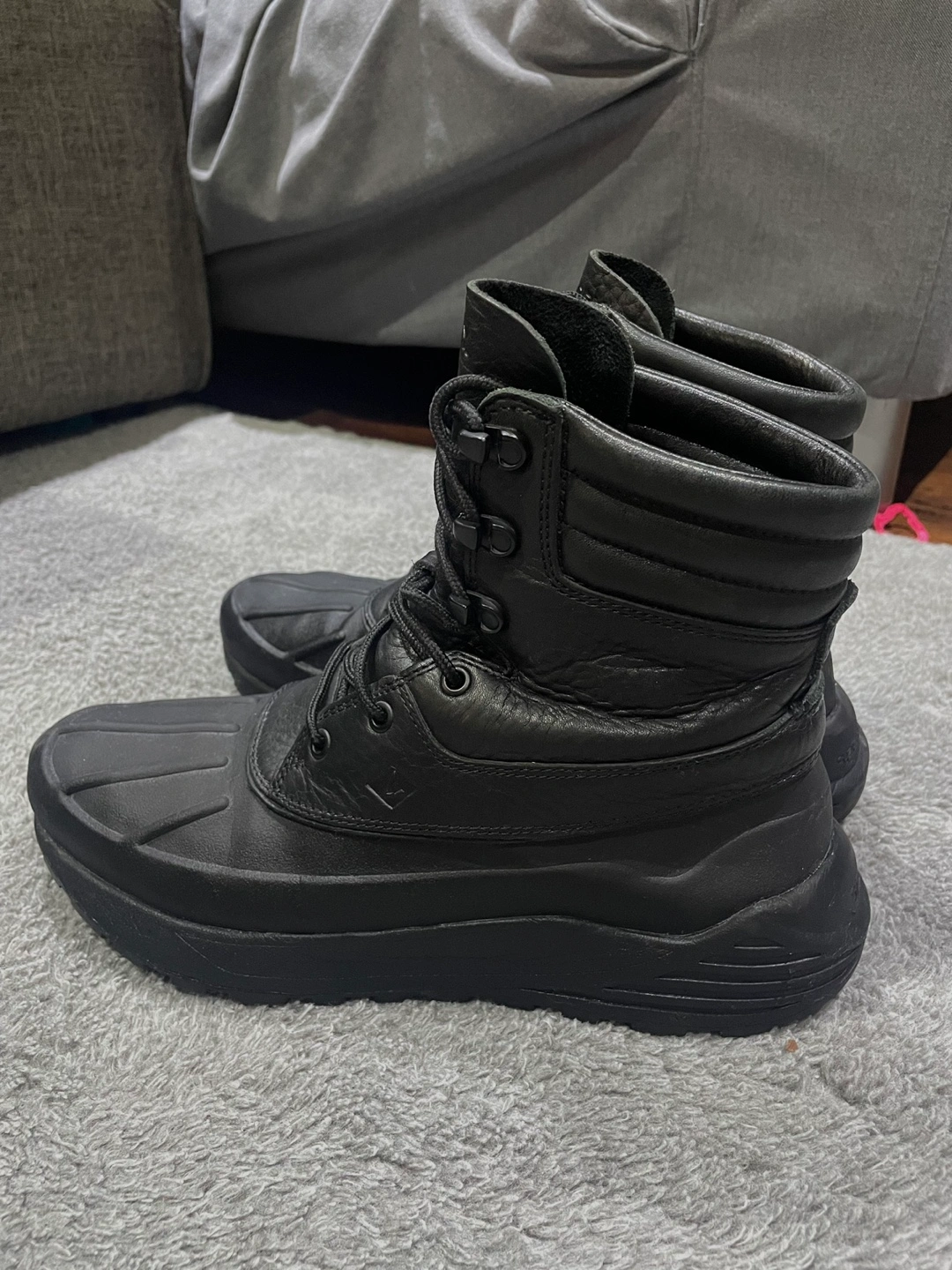 Waterproof Black leather winter boots with lace-up closure. Thick rubber sole. Very Good condition.