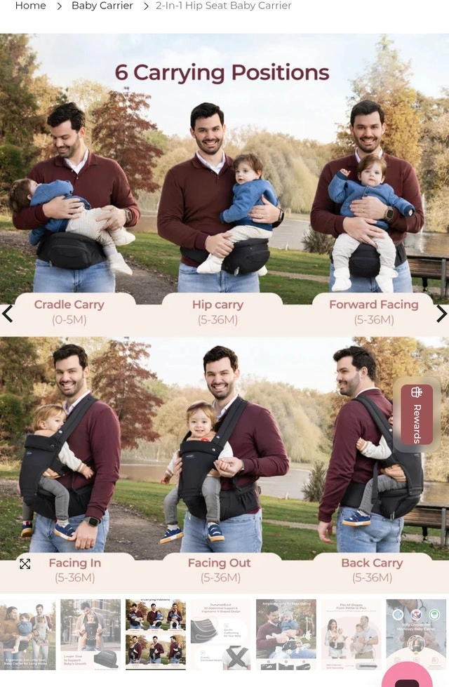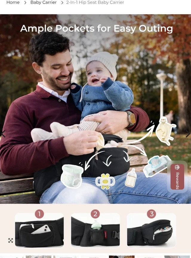 Offering a new Momcozy 2-in-1 ergonomic hip seat baby carrier. Suitable for babies 0-36 months and up to 44lbs. Features multiple carrying positions and spacious storage pockets. Great for C-Section Moms and ensures hip-healthy sitting for baby. Cash and cashless payments accepted.