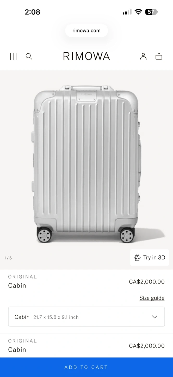 Classic RIMOWA silver aluminium suitcase. It features a durable aluminium shell with reinforced corners and a TSA combination lock. The interior has compression straps and a zippered compartment for organized packing.