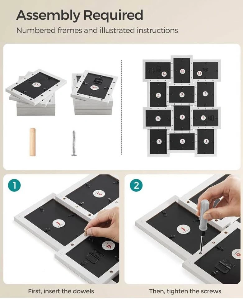 Pick up: Brock Road and Rex Heath Drive in Pickering. Give your walls a stylish upgrade with these SONGMICS Collage Picture Frames – 12 Pack in elegant Cloud White. Perfect for family photos, special moments, or gallery walls! Holds 4x6 photos. Modern collage design. Durable & stylish pale gold finish. Easy to assemble. Ideal for living rooms, hallways & bedrooms. Create a beautiful photo display that tells your story.