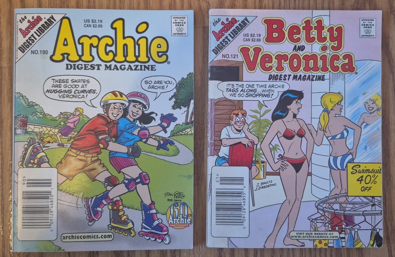Bundle of two Archie Digest Magazines. Includes Betty and Veronica Digest Magazine No. 121 and Archie Digest Magazine No. 190. Perfect for any Archie comics fan!