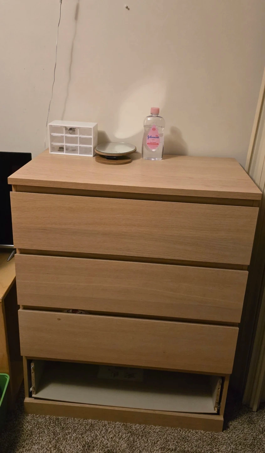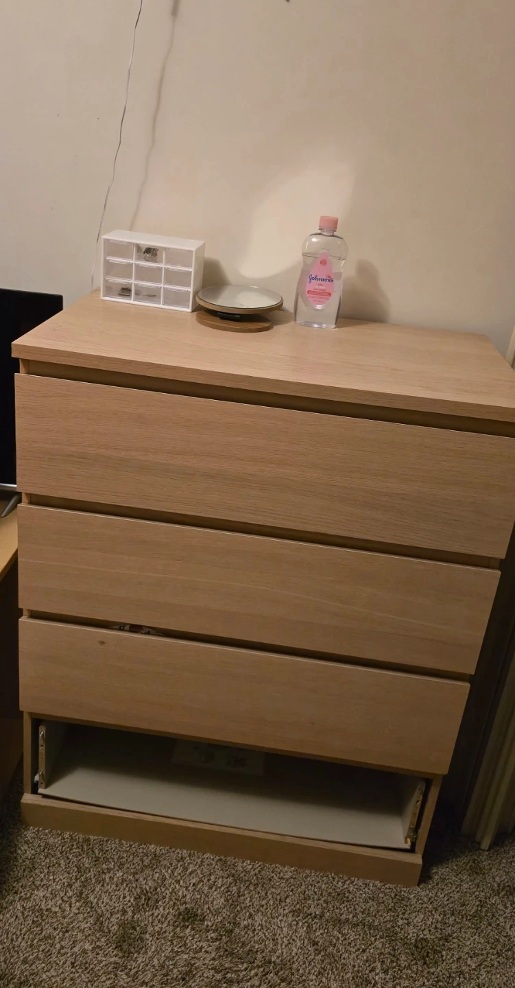 This dresser offers ample storage missing one drawer . It's constructed from wood, giving it a natural and warm look for any room. This piece is perfect for organizing clothes and other household items