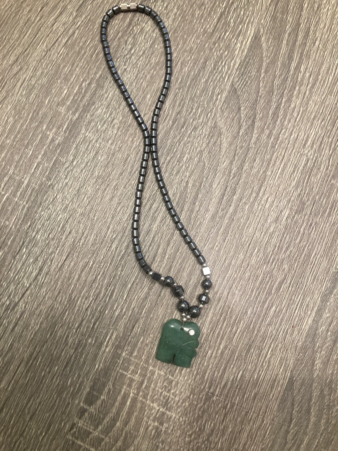 Green Elephant Jade Pendant Necklace with Hematite Beads