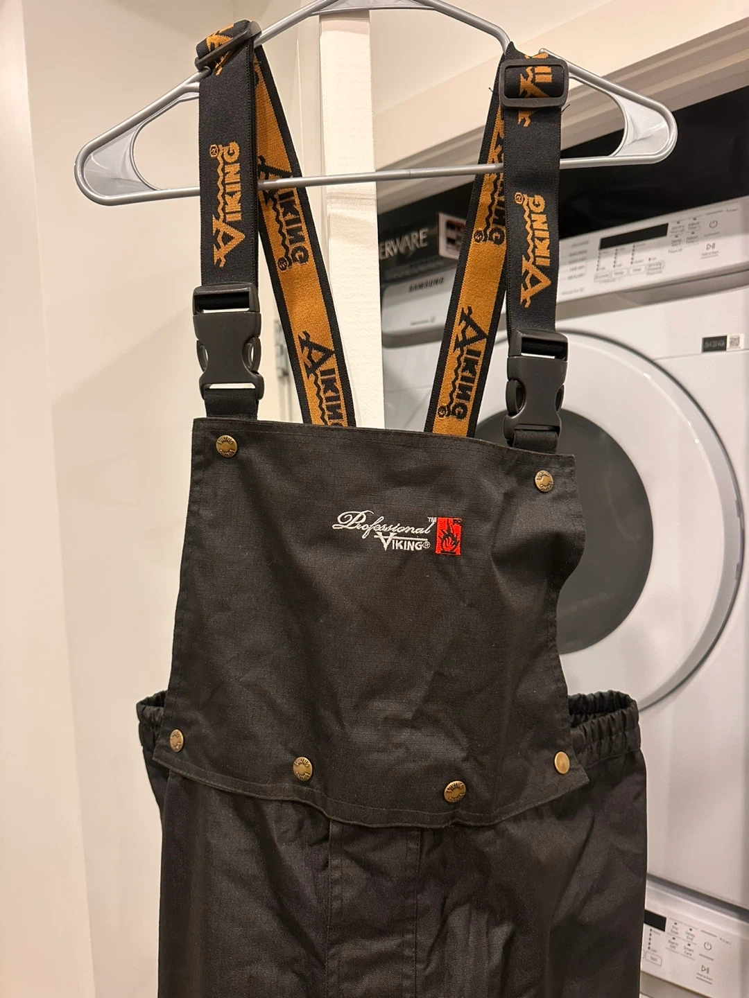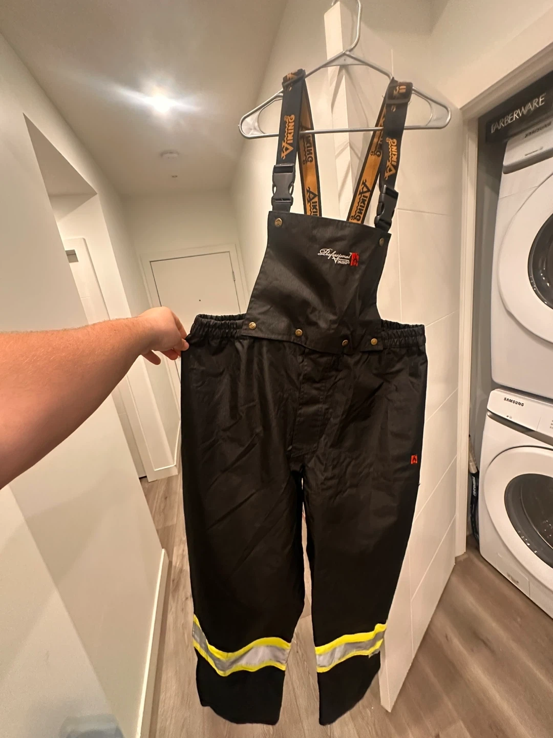 Selling a pair of Viking Journeyman 300D FR Trilobal Rip-Stop flame resistant pants in size 2XL. These black pants are CSA Z96-15 Class 1 Level 2 / Classe 1 Niveau 2 and ANSI/ISEA 107-2015 certified. The outer shell is 100% polyester and the coating is 100% polyurethane. The lining is 100% polyester as well