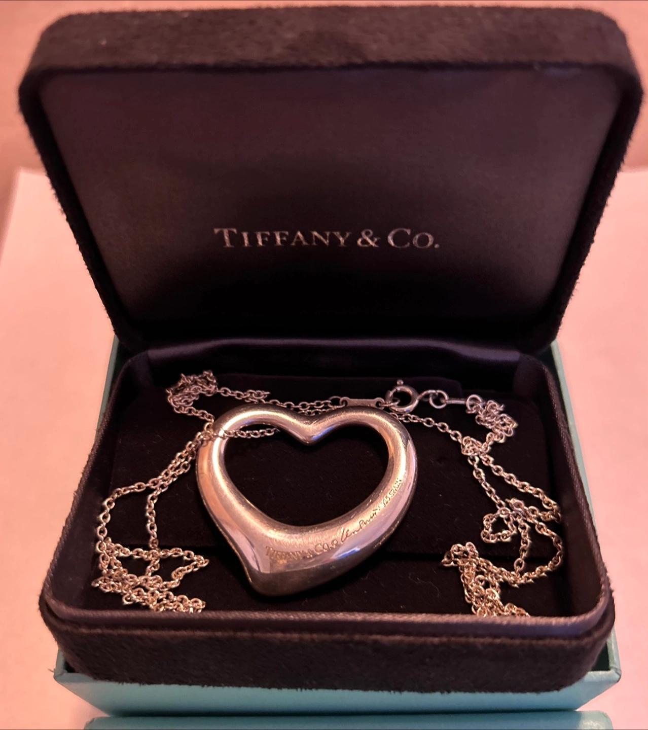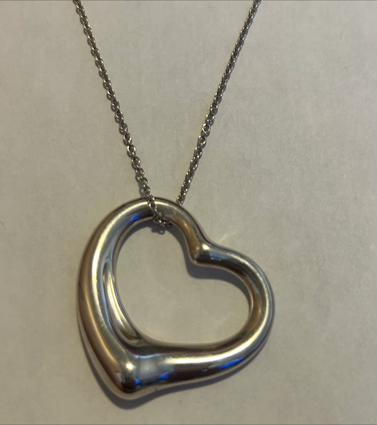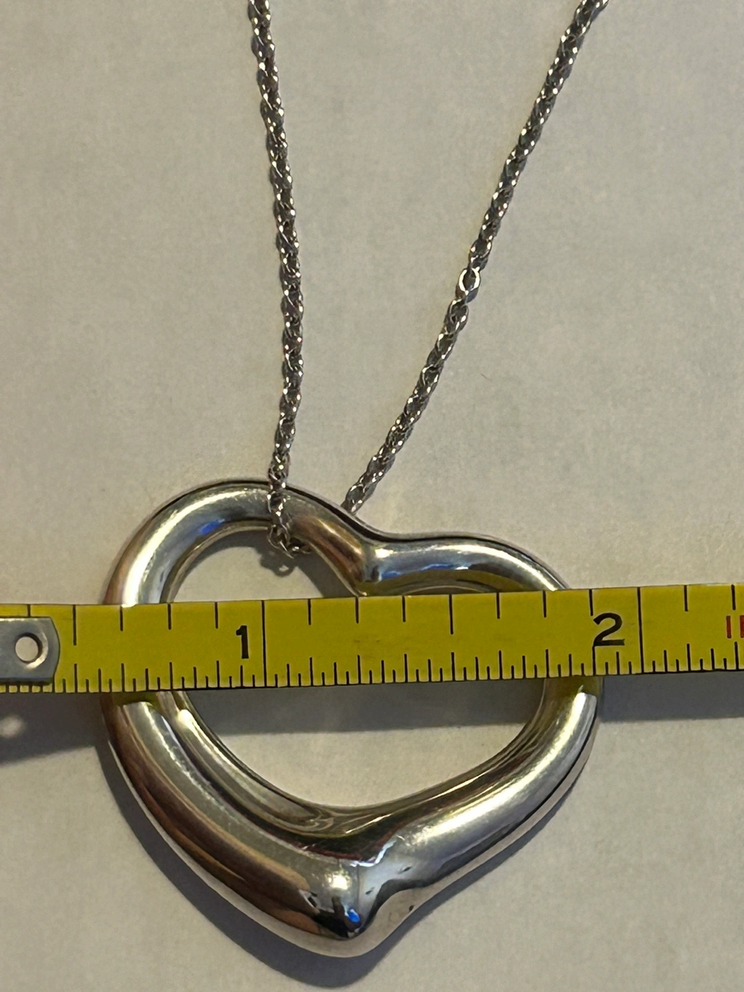 Selling a Tiffany & Co. Open Heart pendant necklace. comes with the box authentic by Elsa Peretti (Spain) 26 inches long used once 925 sterling silver