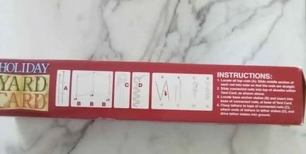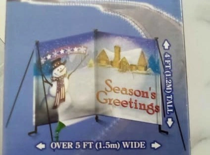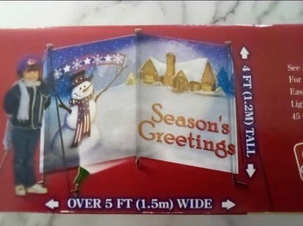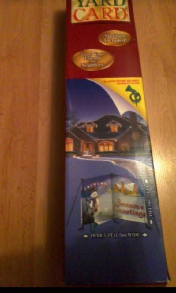 Selling a Holiday Yard Card by Gemmy Industries! It's over 5 ft (1.5m) wide and 4 ft (1.2m) tall. It includes a spotlight and is for indoor or outdoor use. Easy assembly is required. Please note that the lightbulb is not included, but a 45 watt lamp is recommended. You can install it how ever you like, with light, without light. Straight or angled. The design options are endless.