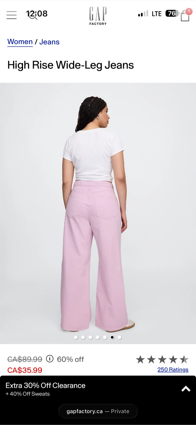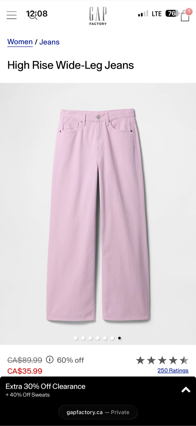 These GAP High Rise Wide-Leg Jeans are a size 14/32S. They're a lovely lilac pink colour. Denim material.
