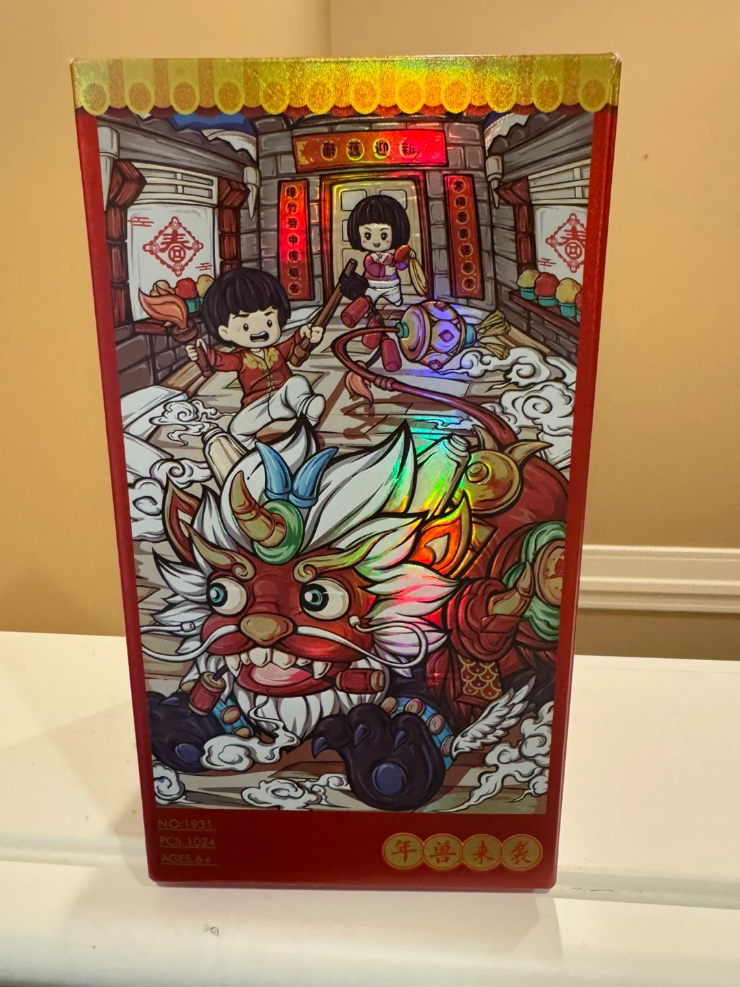 This is a LOZ Mini Modular building block set featuring a Chinese New Year dragon and traditional buildings. It's suitable for ages 6 and up. The set is made of plastic construction pieces.