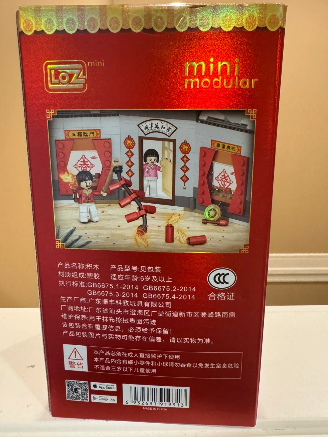This is a LOZ Mini Modular building block set featuring a Chinese New Year dragon and traditional buildings. It's suitable for ages 6 and up. The set is made of plastic construction pieces.