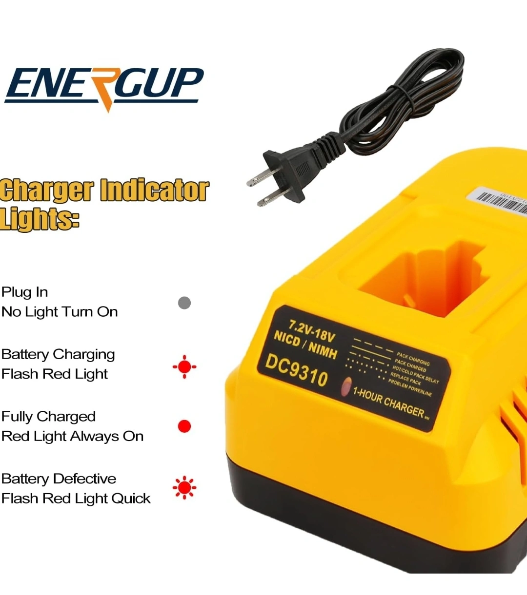 Energup 18V DC9310 Charger Replacement 7.2Volt-18Volt 1-Hour Charger for DEWALT 7.2V-18V NiCad & NiMh Battery DW9057 DC9071 DC9091 DC9096 DW9072 DW9091 DW9099 for 18V Dewalt Battery Charger °•○•°•○•°•○•°•○•°•○•°•○•°•○•°○•°•○°•○°•○ 🌟 Price: $30 📦 Condition: Brand New 📍 Pick-Up Location: Scarborough Golf Club Road & Lawrence Ave East 🚚 Delivery Options: Local delivery or affordable shipping via Canada Post / UPS 🔎 Don't Miss Out! Explore my other listings for more amazing deals. Thank you for your interest! °•○•°•○•°•○•°•○•°•○•°•○•°•○•°○•°•○°•○°•○ 🔋 Battery Charger DC9310 for DEWALT 7.2V-18V NiCad & NiMh Batteries 🔋 About Energup: ⚡ Energup is a trusted professional manufacturer of high-quality replacement power tool batteries and chargers. 💡 Built on advanced technologies, great deals, and constant innovation! 🔧 Compatible Battery Models: (📌 Use Ctrl+F to search for your model. Not compatible with Lithium-ion batteries.) 7.2V NiCad & NiMh: DE9057, DE9085, DW9057 12V NiCad & NiMh: 152250-27, 397745-01, DC9071, DE9037, DE9071, DE9072, DE9074, DE9075, DW9071, DW9072 14.4V NiCad & NiMh: DC9091, DE9038, DE9091, DE9092, DE9094, DE9502, DW9091, DW9094 18V NiCad & NiMh: DC9096, DE9039, DE9095, DE9096, DE9098, DC9098, DW9096, DW9095, DW9098 --- ✨ Why Choose This Charger? ✅ Versatile Compatibility: Works with all DEWALT 7.2V-18V NiCad & NiMh batteries (DC DW XRP series). ✅ Fast Charging: Advanced technology charges your battery in 1 hour or less, minimizing downtime. ✅ Smart Diagnostics: LED indicators show battery status (charging, charged, too hot, or too cold). ✅ Durable Design: Built-in cooling system for efficient heat dissipation and long-lasting use. --- 📦 Package Includes: 1️⃣ DC9310 Charger for DEWALT 7.2V-18V NiCad & NiMh Batteries. 🌟 Product Highlights: 🔌 Wide Voltage Support: US standard 110V-240V plug for global compatibility. 🔋 Intelligent System: Communicates with the battery to optimize performance and extend life. ✔️ Meets FCC, RoHS, and CE safety standards for worry-free use. Upgrade your tool game with this efficient, fast, and reliable charger! 🚀