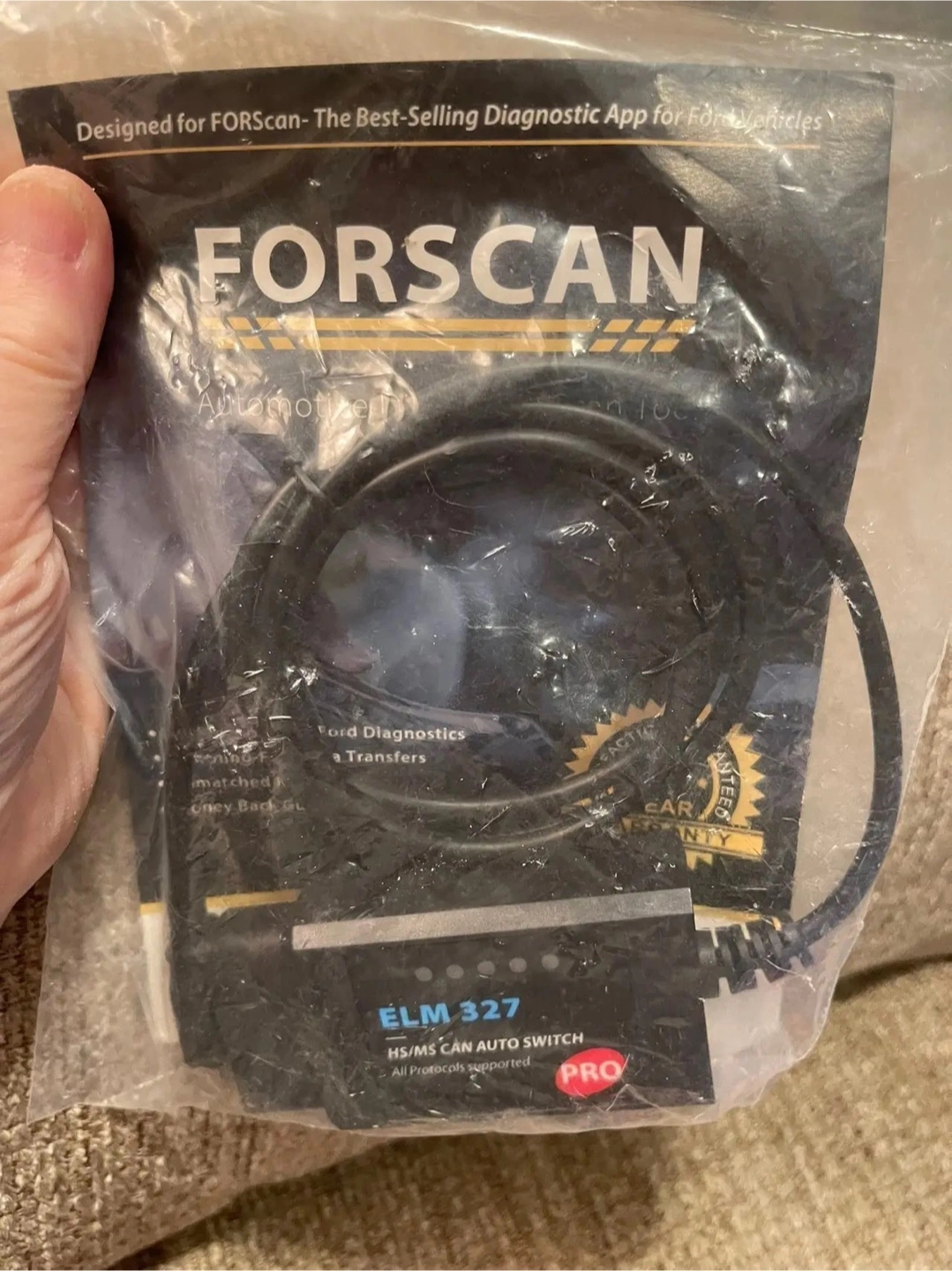 This is a FORScan ELM327 diagnostic tool with HS/MS CAN auto switch. It supports all protocols and is designed for Ford Diagnostics. It's a great tool for automotive use and data transfers.