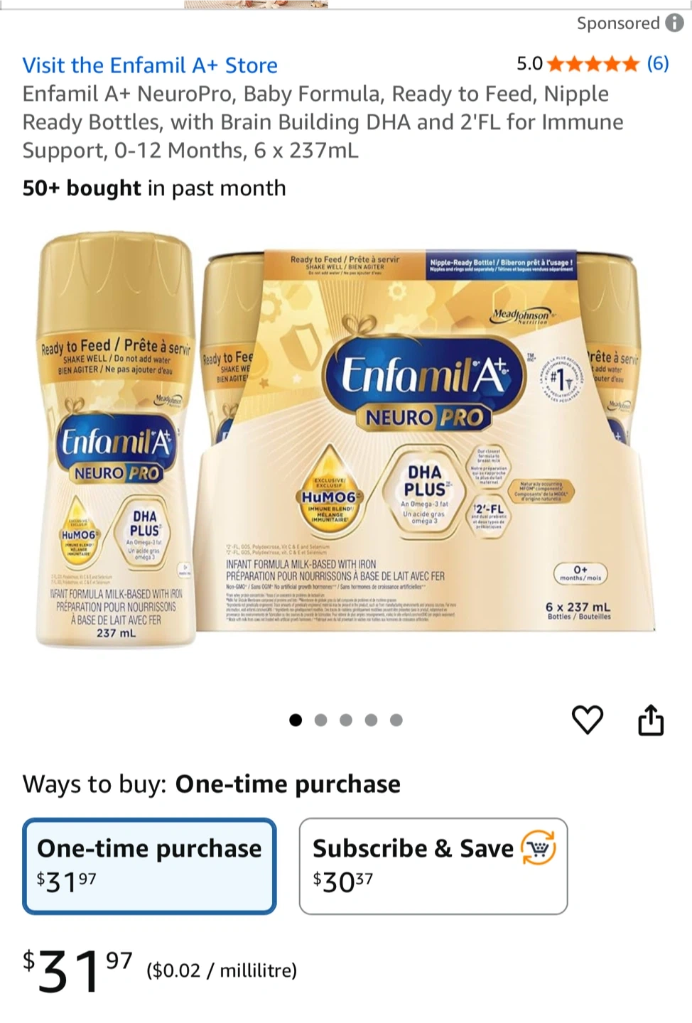 Selling some Enfamil A+ NeuroPro ready-to-feed formula. These are 237mL bottles, perfect for on-the-go feeding. It contains DHA Plus and 2'FL for immune support and is suitable for babies aged 0-12 months. 4/6 bottles left unopened expiry is January 2026
