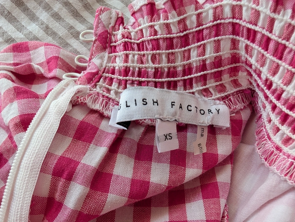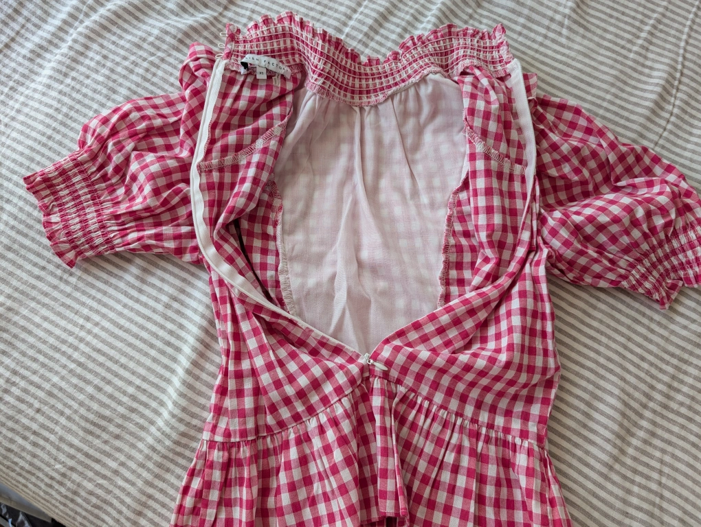 100% cotton. Super sweet Pink gingham. pick up Kipling or Islington or Sherway.