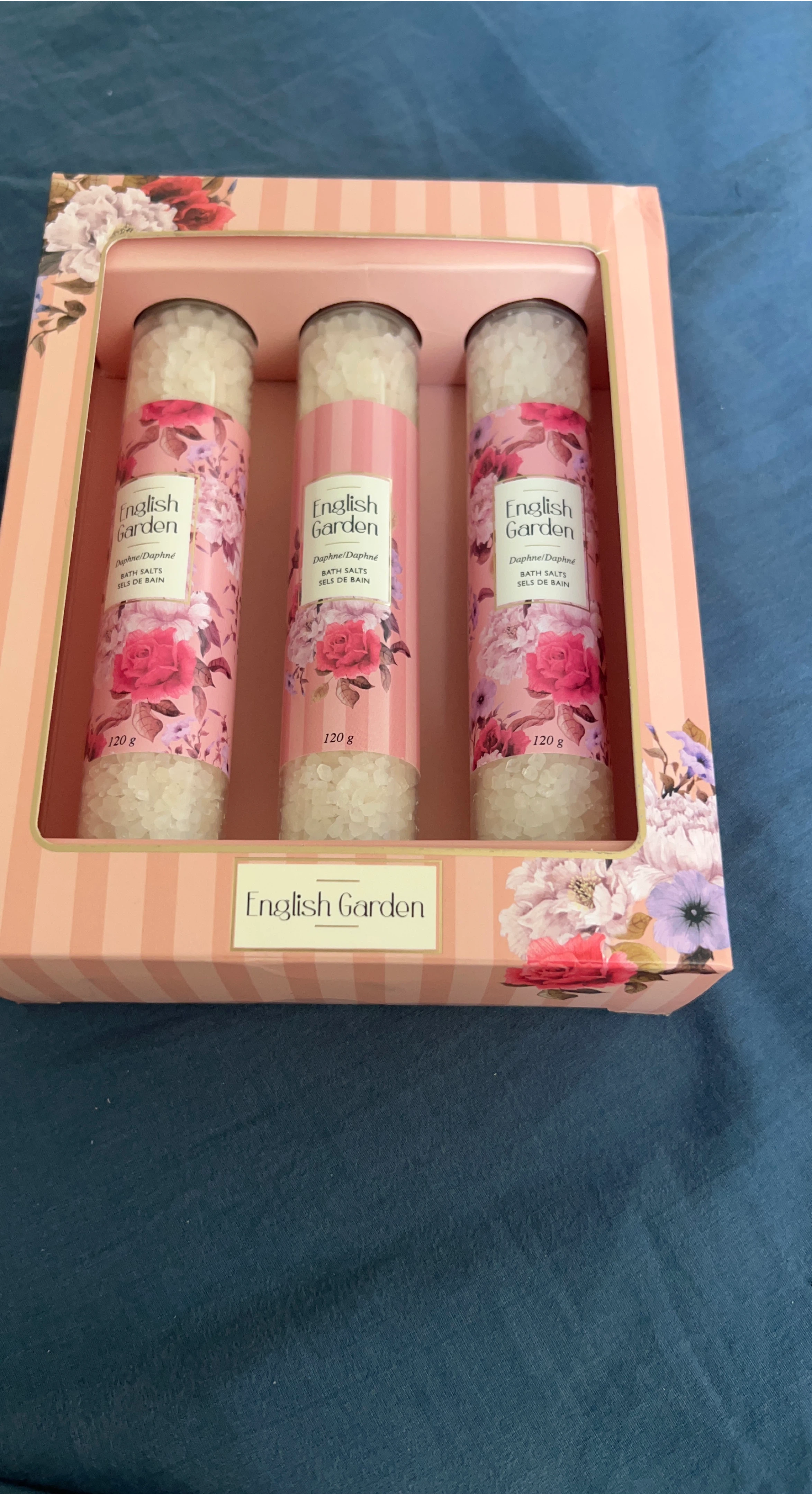 20Selling a set of English Garden Daphne bath salts. Each tube contains 120g of bath salts. Perfect for a relaxing soak!