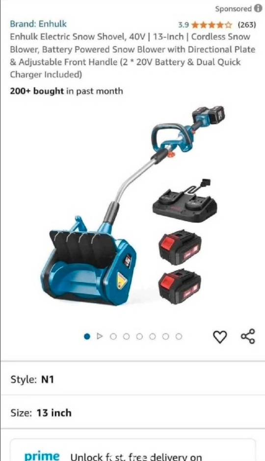 34Open box new condition On Amazon for $350 +tax and shipping DOES NOT COME WITH BATTERY AND CHARGER, which is why it's half price Any questions let me know Brand: Enhulk Power source: Battery Powered Colour: Blue Engine type: Electric Ideal Snow Depth: 20.3 Centimeters Clearing Width: 33 Centimeters