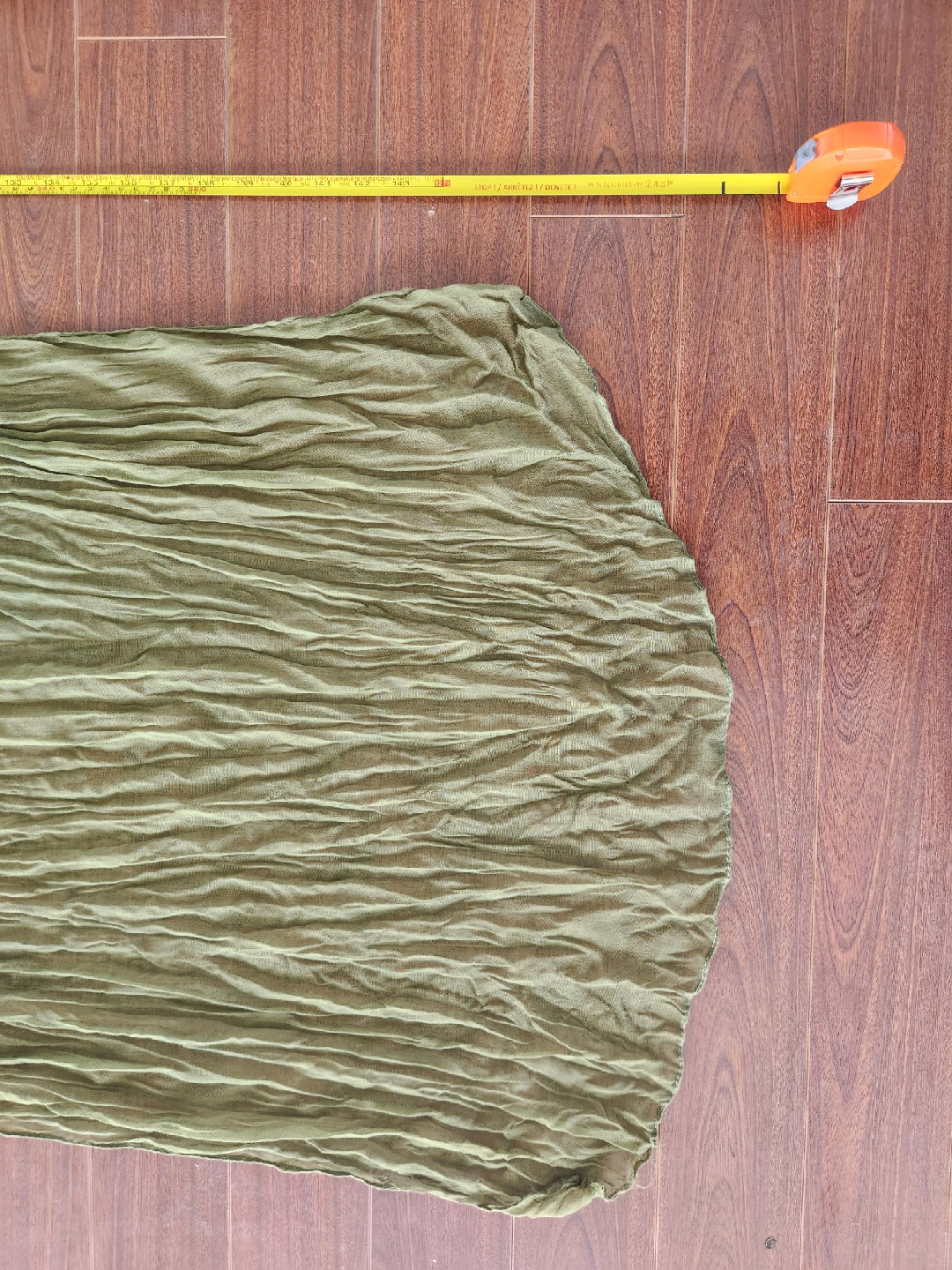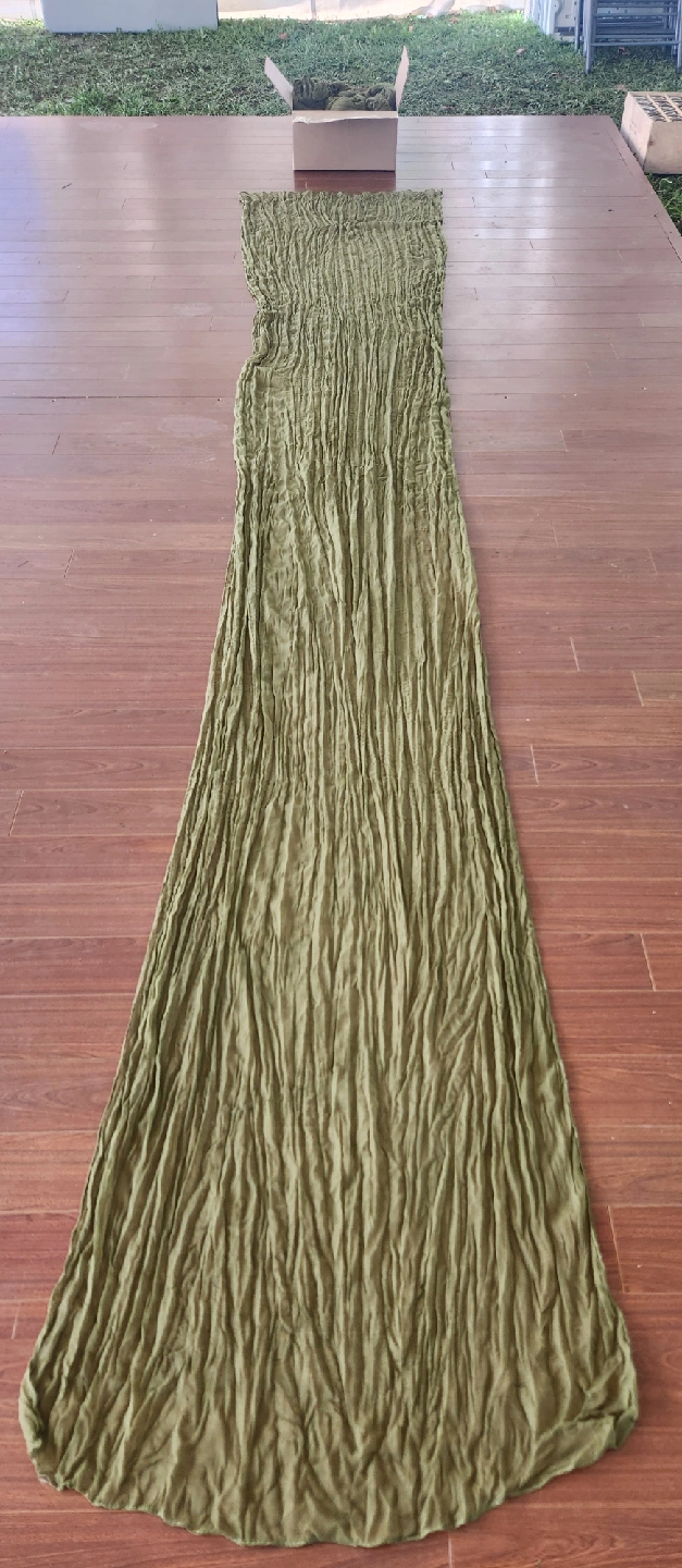 I have some new olive green crinkle gauze fabric for sale! It's a beautiful, textured material that would be perfect for a variety of projects. The fabric is in excellent condition and has a lovely drape. It's ready for your creative ideas! Comes in 12 bolts that are 2ft wide by 12ft long.