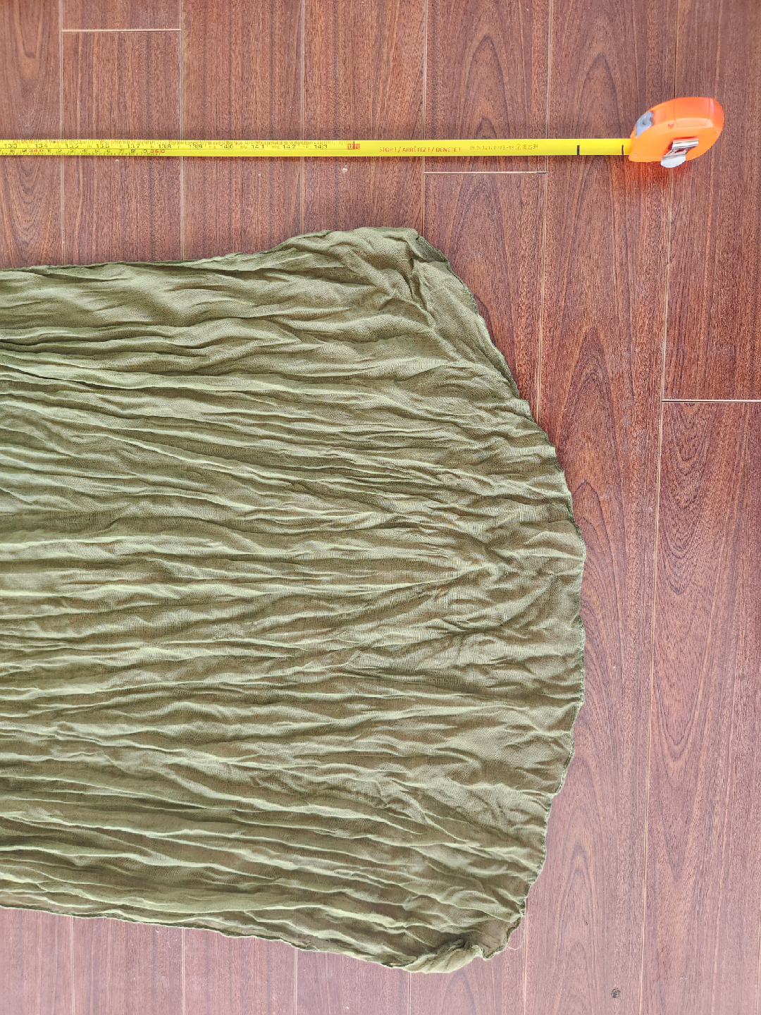I have some new olive green crinkle gauze fabric for sale! It's a beautiful, textured material that would be perfect for a variety of projects. The fabric is in excellent condition and has a lovely drape. It's ready for your creative ideas! Comes in 12 bolts that are 2ft wide by 12ft long.