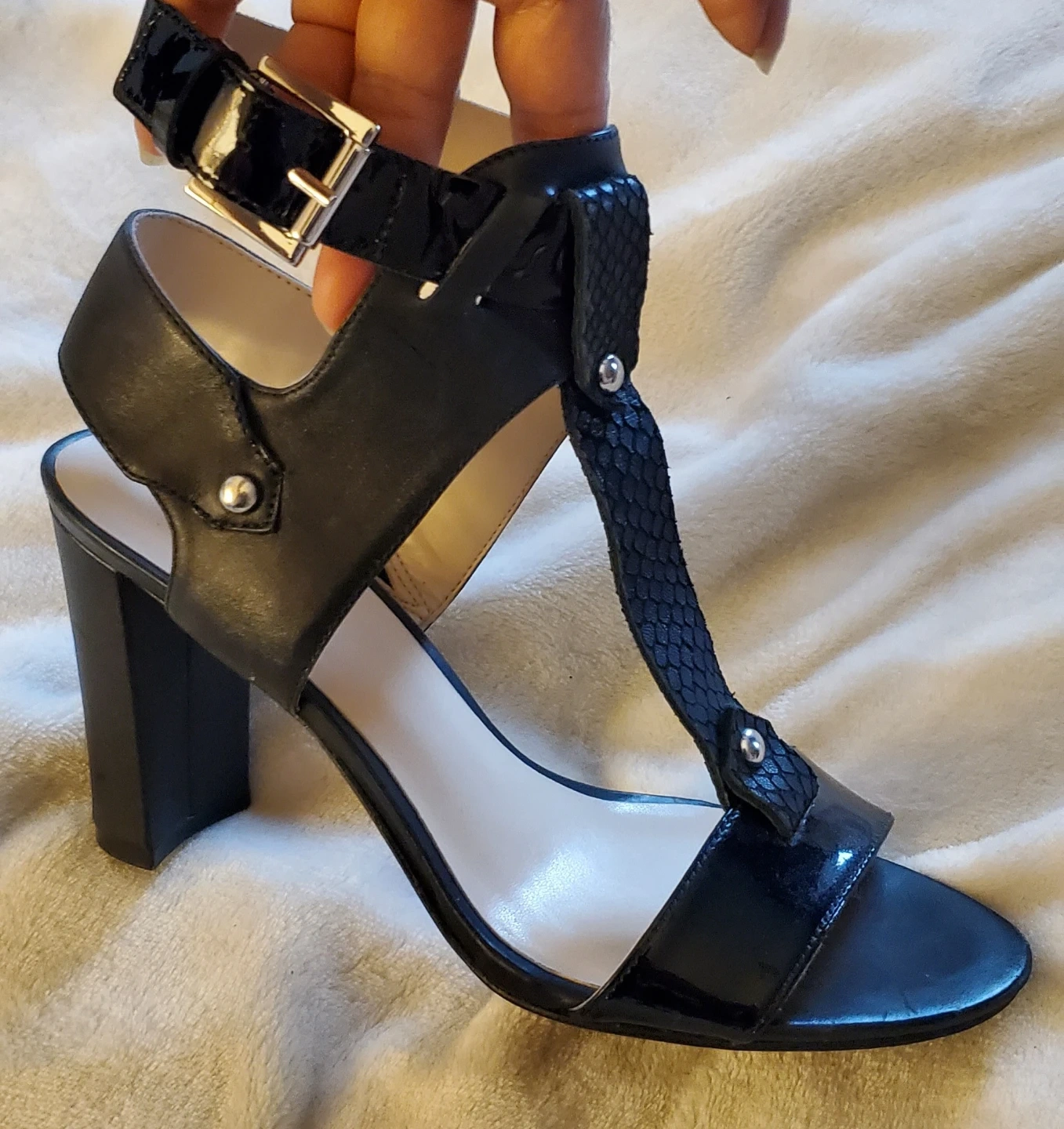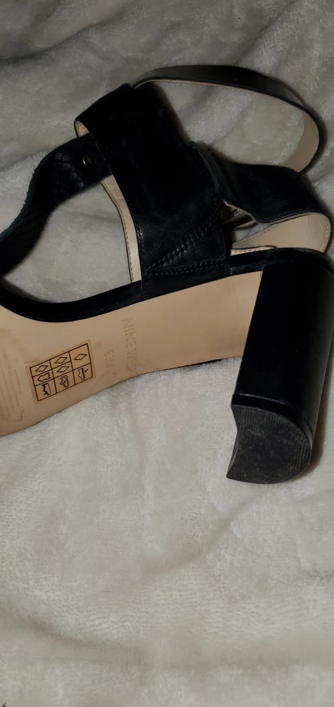 Nine West black block 3 Inch heel sandals with ankle strap. Size 6.5M. Leather and synthetic materials. Used once, still in a box . Make me an offer.