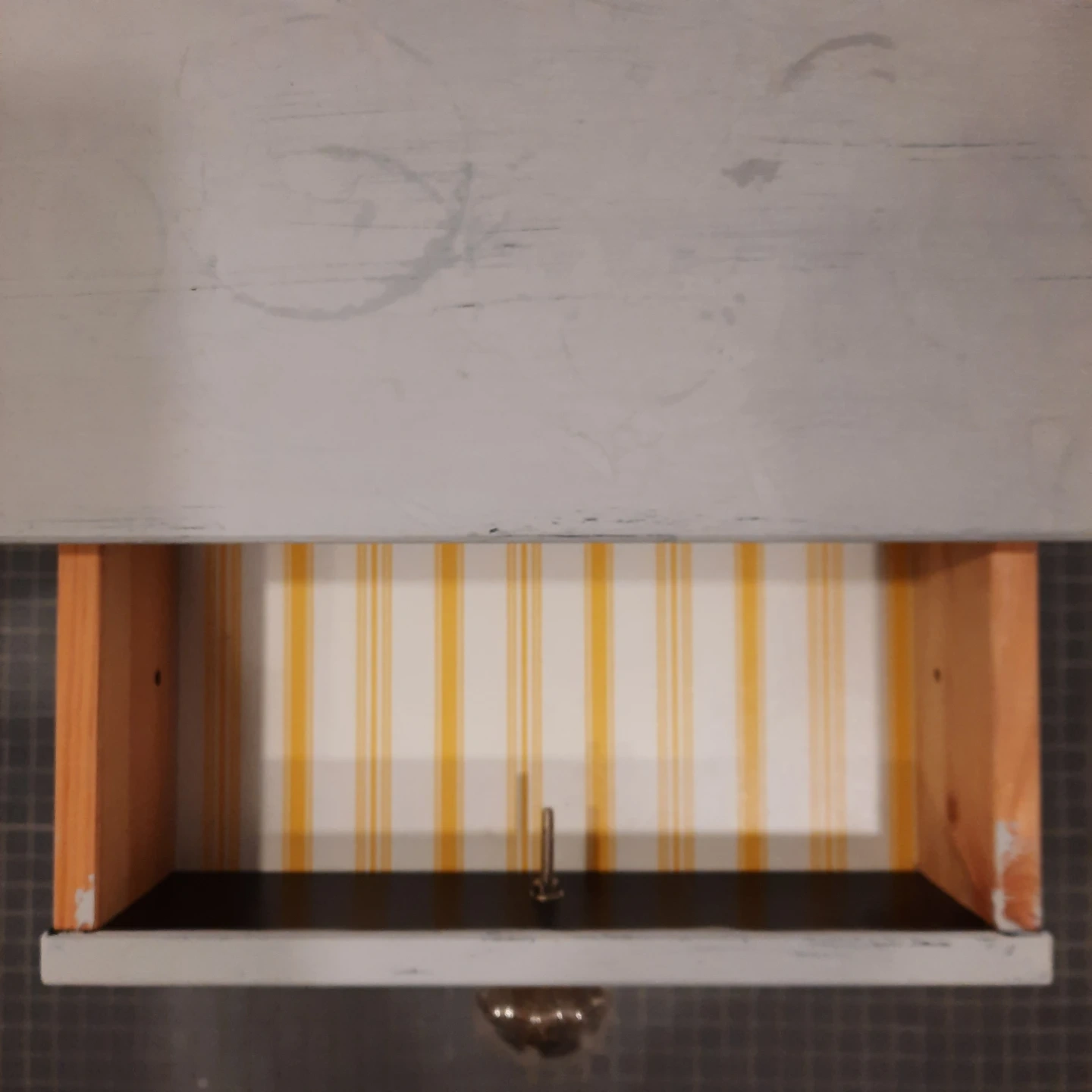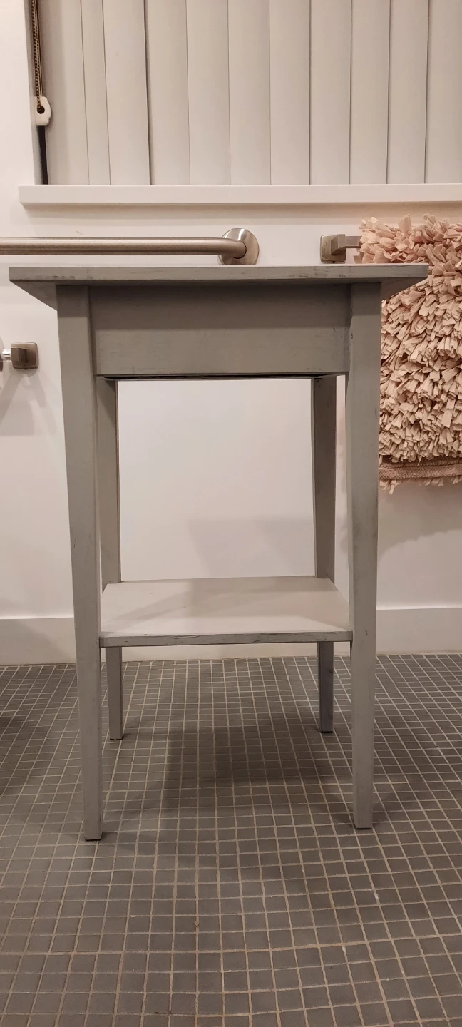 I bought this used table off of Karrot for $10 a few years ago, and don't need it anymore. It's solid & sturdy; some stains on the table top; needs a refinishing job(it's still the same light, grey colour from when I bought it) and, the drawer's knob is wobbly and such but, hey!- it served its purpose for the time I've had it.