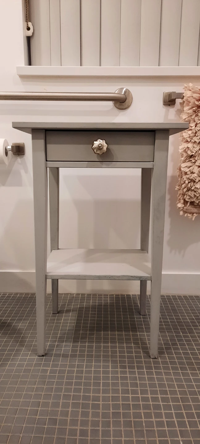 I bought this used table off of Karrot for $10 a few years ago, and don't need it anymore. It's solid & sturdy; some stains on the table top; needs a refinishing job(it's still the same light, grey colour from when I bought it) and, the drawer's knob is wobbly and such but, hey!- it served its purpose for the time I've had it.