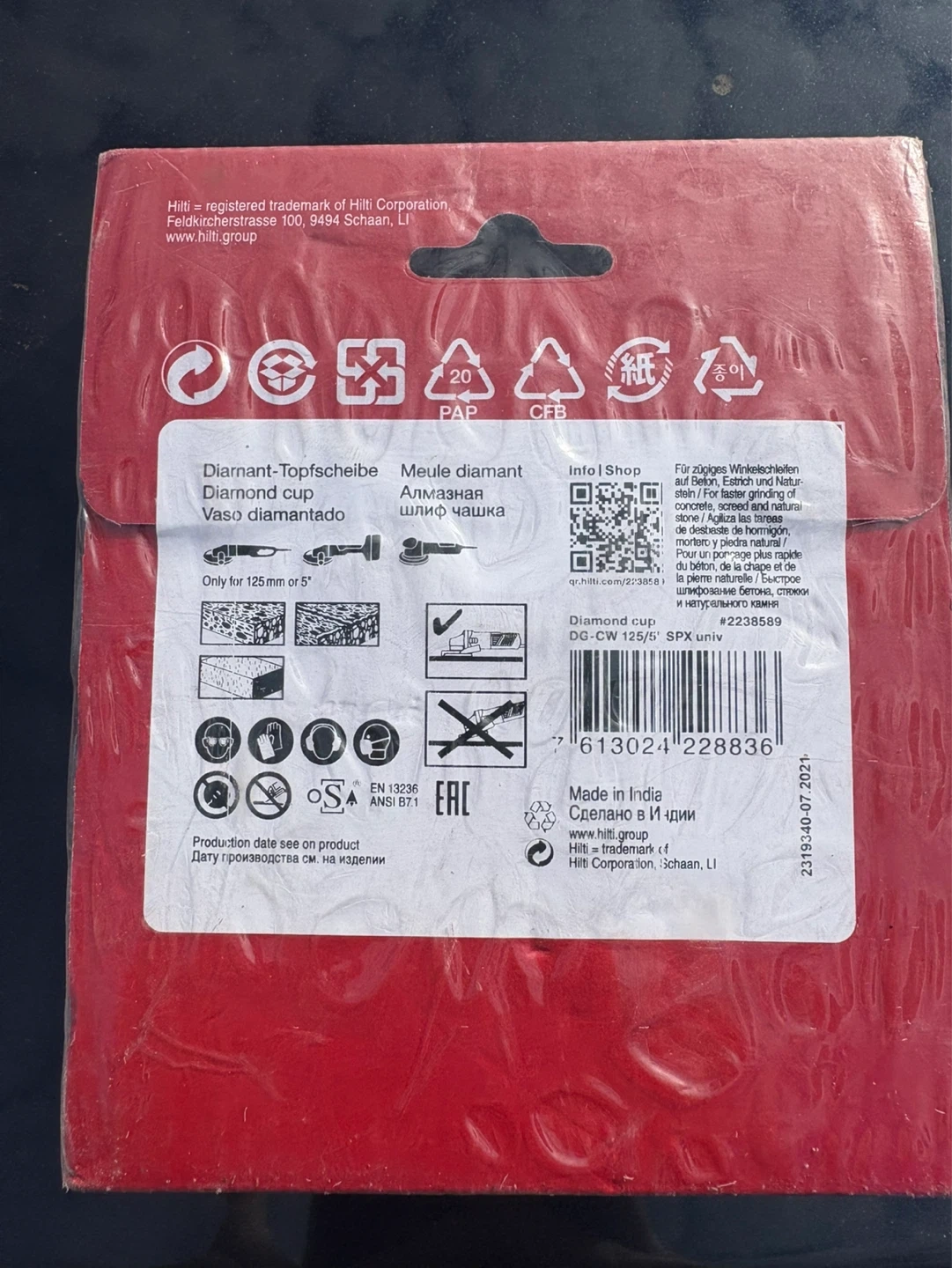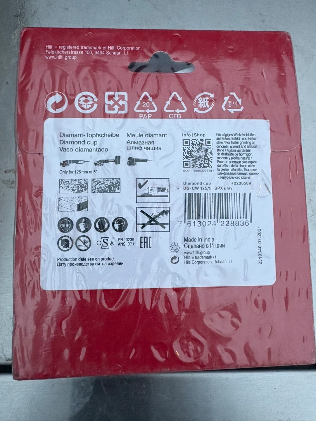Buy & SellHilti Diamond Cup DG-CW 125/5" SPX univHilti Diamond Cup DG-CW 125/5" SPX univ$75Hilti Diamond cup DG-CW 125/5" SPX univ. Only for 125 mm or 5" grinders. Made in India.ConditionNewWHERE TO MEETCheck LocationView MapSELLERManyBrookhaven262 reviews0 chats·0 favorites·3 viewsSEND CHAT TO SELLERHi Many! I’m interested in your listing.Hi Many! I’m interested in your listing.Get the Karrot app to chatSign In to chat