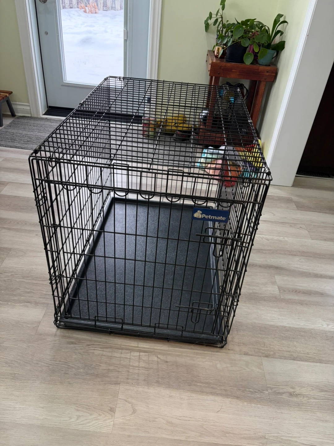 Buy & SellPetmate Dog CratePetmate Dog Crate$38This is a Petmate wire dog crate with a black plastic tray. It's a sturdy enclosure for a dog. The crate is foldable for easy storage.ConditionLike newWHERE TO MEETCheck LocationView MapSELLERverifiedDavidBramalea600 reviews0 chats·0 favorites·4 viewsSEND CHAT TO SELLERHi David! I’m interested in your listing.Hi David! I’m interested in your listing.Get the Karrot app to chatSign In to chat