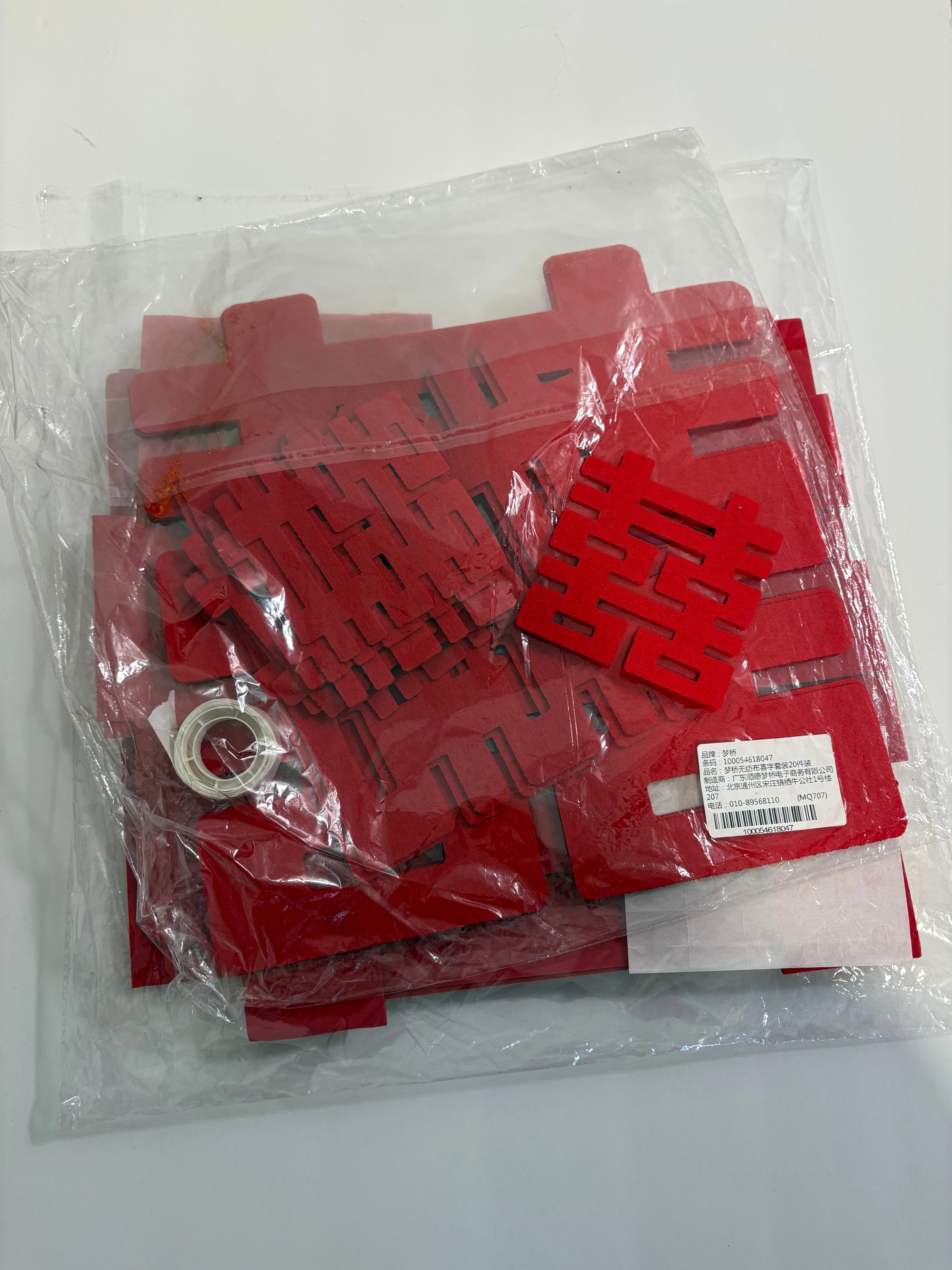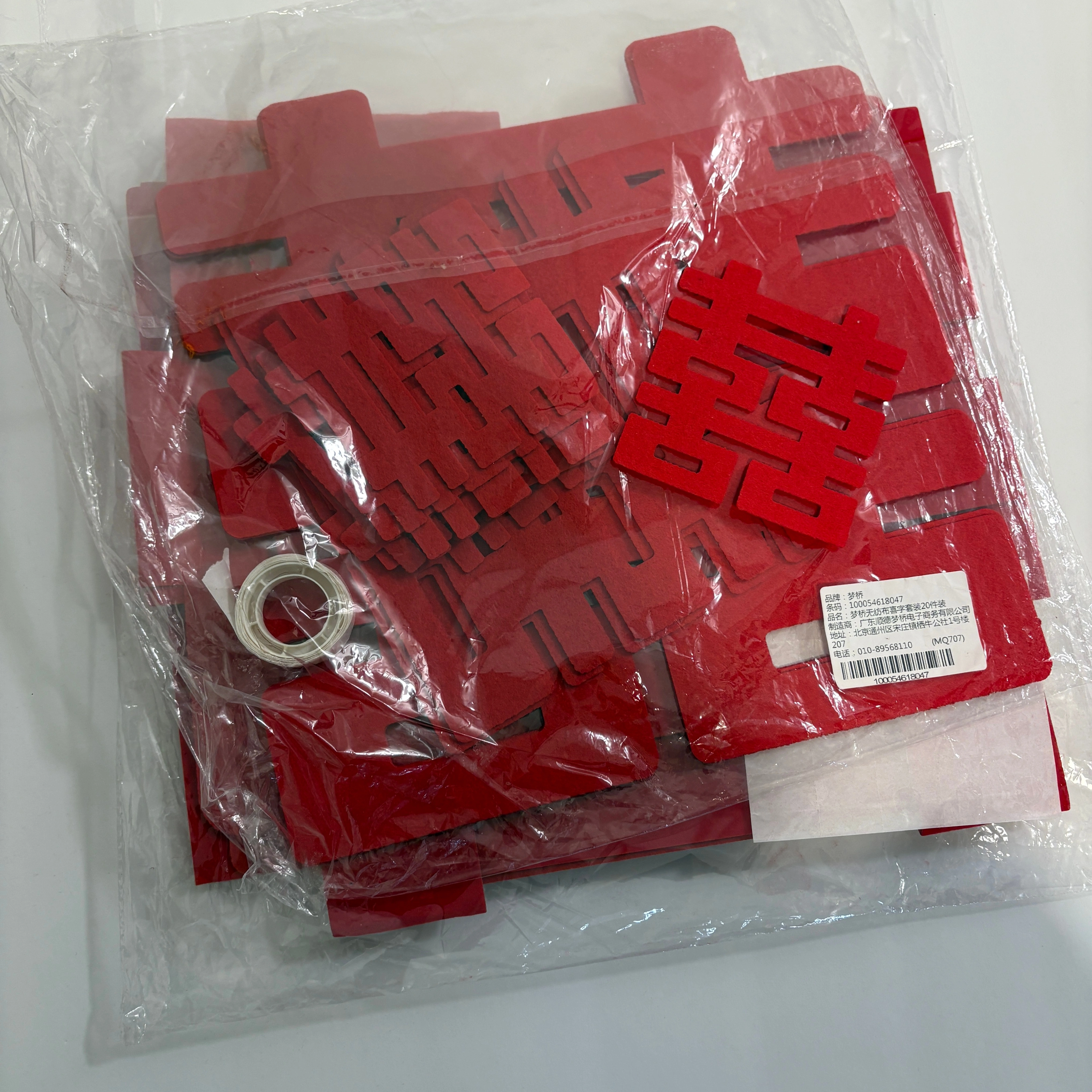 Red Chinese Happiness Wedding Felt Decal for Wedding and Tea Ceremony with Tape