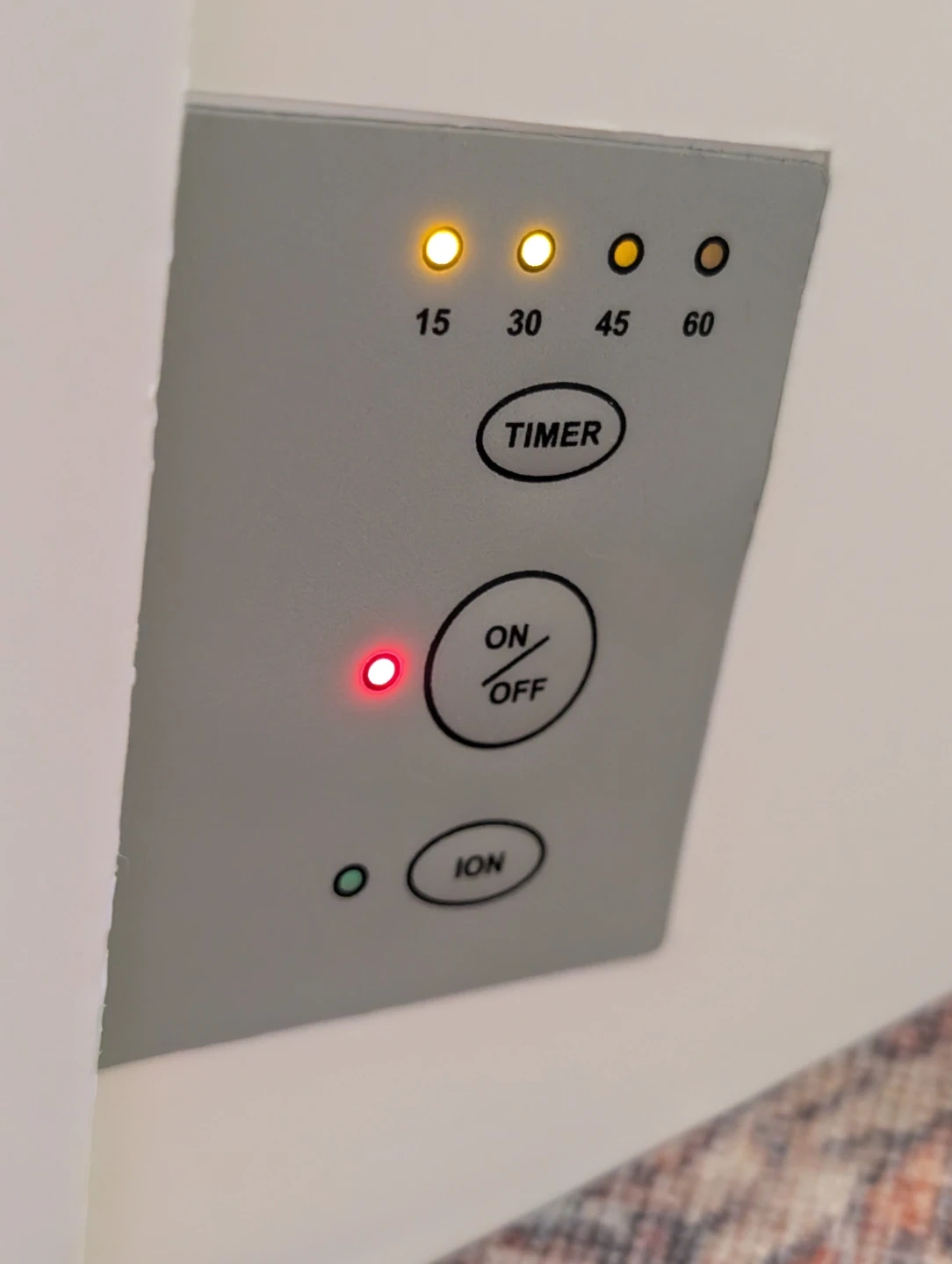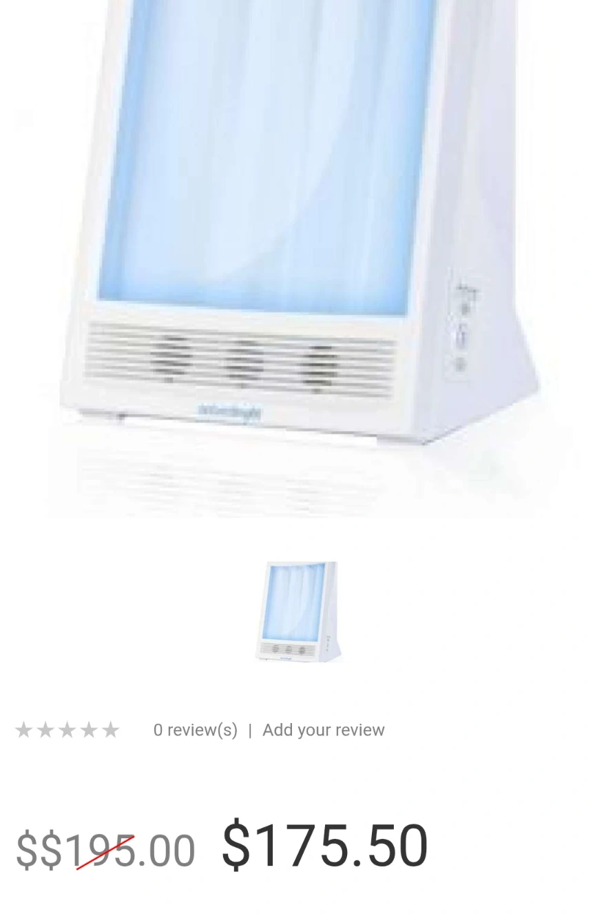 This is a Nature Bright SunTouch Plus lamp. It has a timer with settings for 15, 30, 45, and 60 minutes. The unit also features an on/off switch and an ion function. It's designed for home or office use.