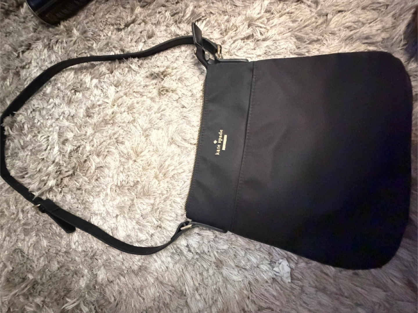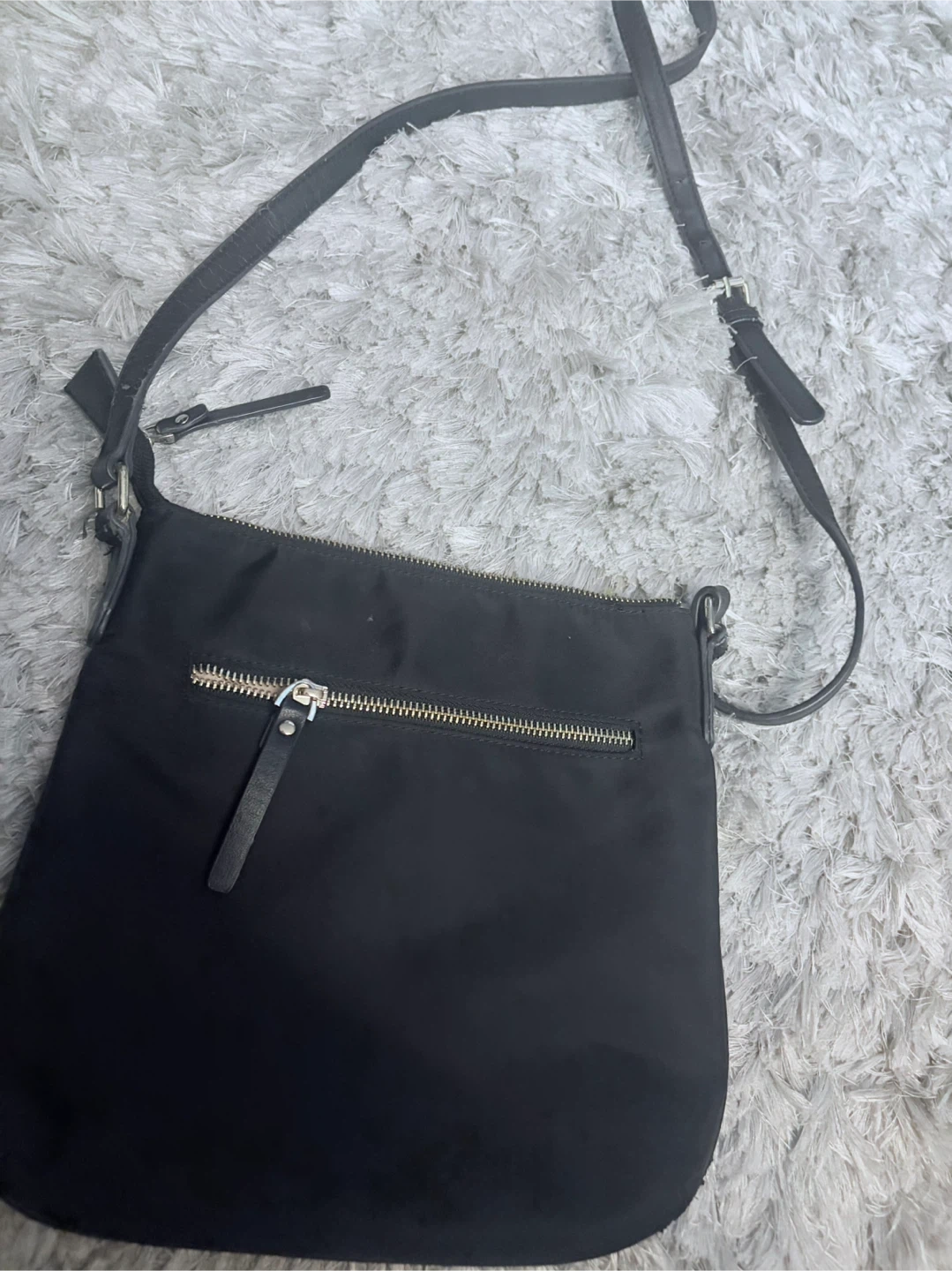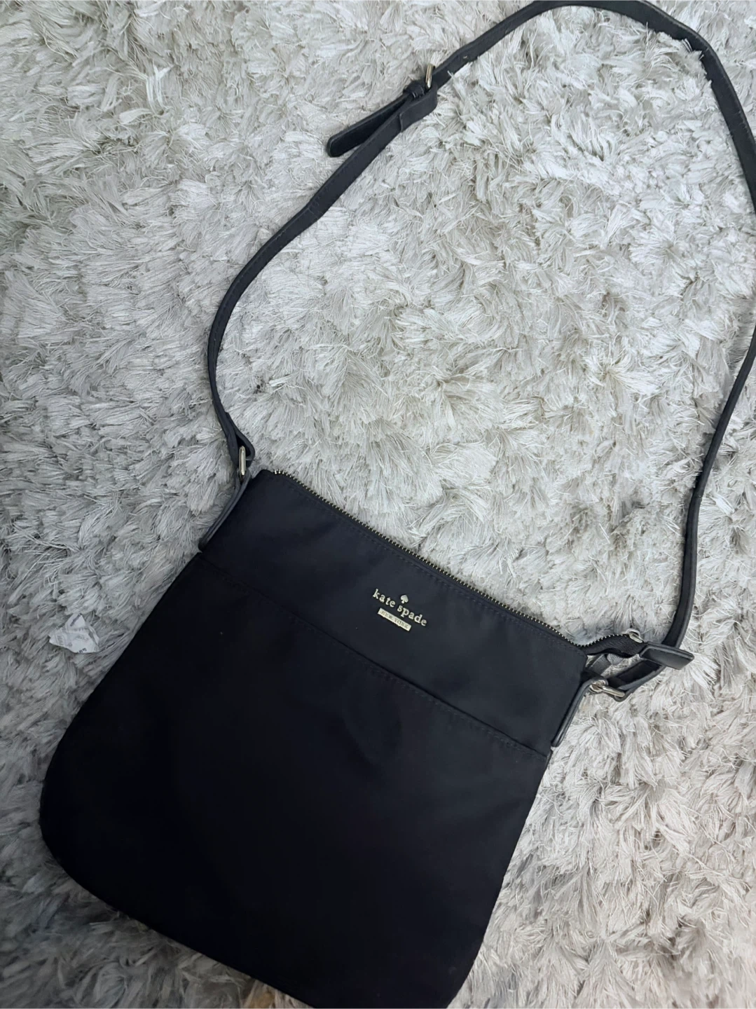 Black nylon crossbody bag by Kate Spade. Features a zippered main compartment and an exterior zippered pocket. strap is adjustable. In great condition!