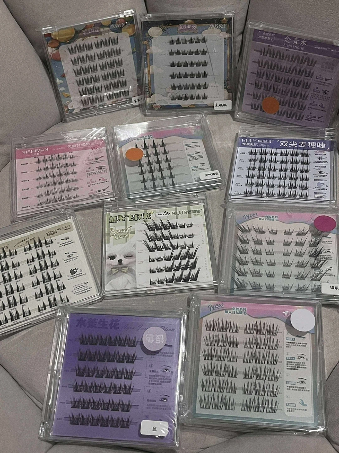 60J'ai un ensemble de faux cils de différentes marques comme YISHIMAN et RUUS. Ils sont tous neufs et dans leur emballage d'origine. Parfait pour essayer différents styles et looks!