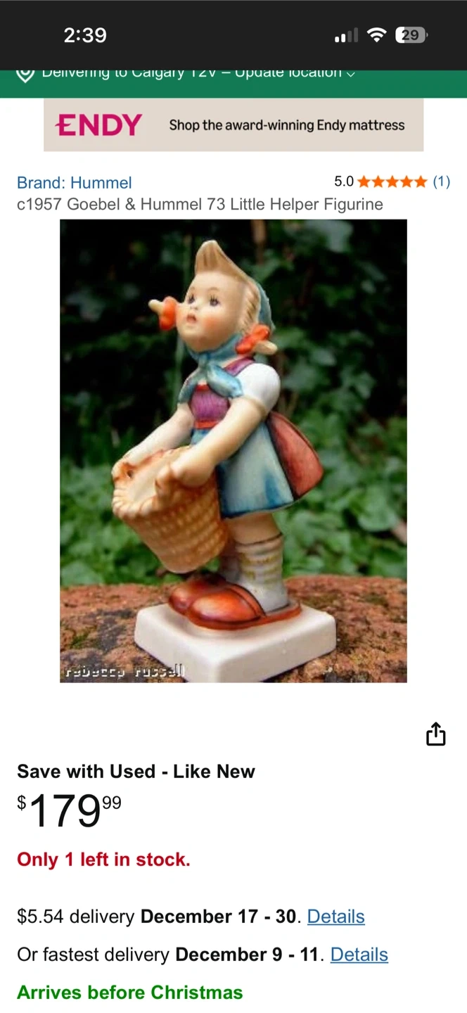 Selling a Hummel c1957 Goebel & Hummel 73 Little Helper figurine. It's in great condition and ready to add some charm to your collection. Many listed for $150+. Pick up is Haysboro SW.