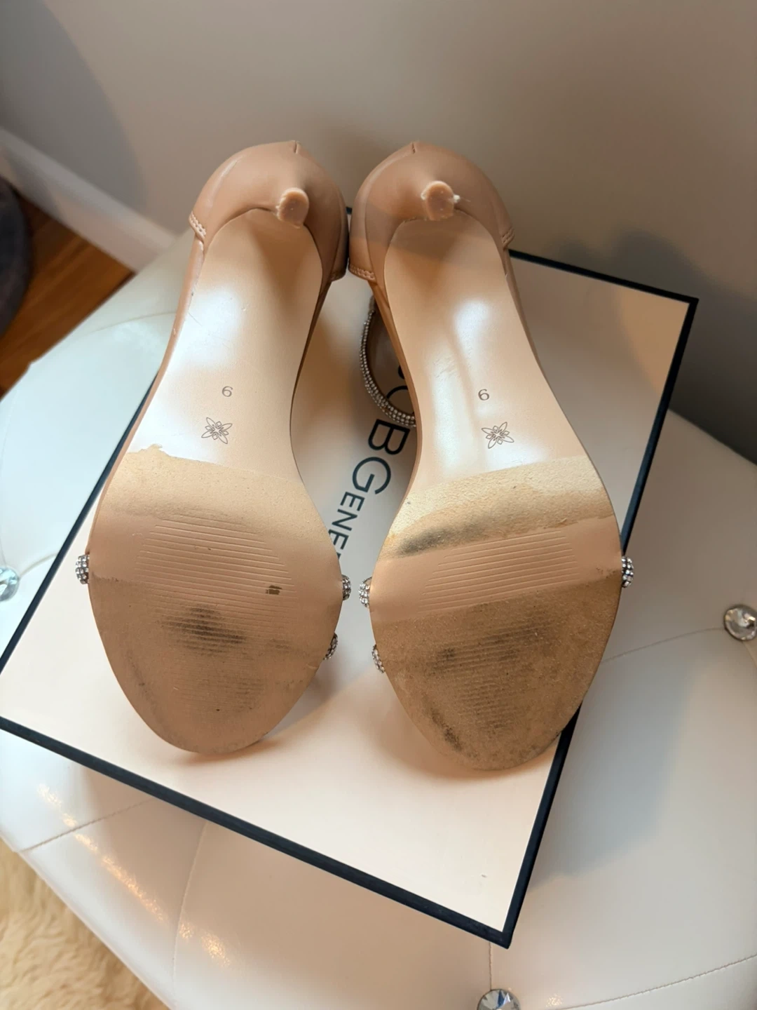 BCBGeneration Strappy Rhinestone Heels Size 6