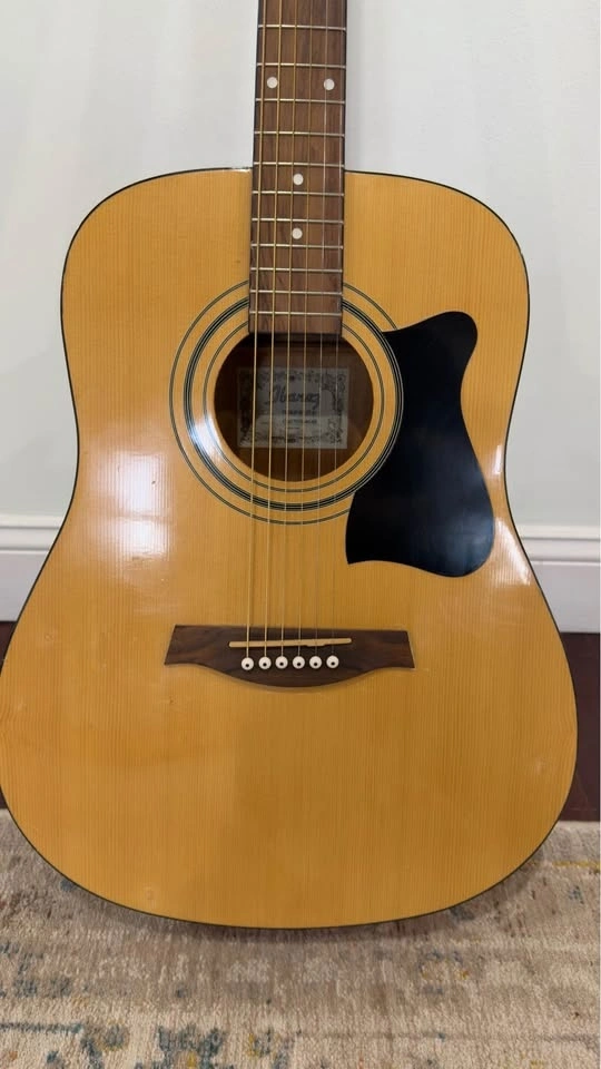 Warm, full-bodied tone from this dreadnought-sized acoustic. Plays beautifully and sounds great.