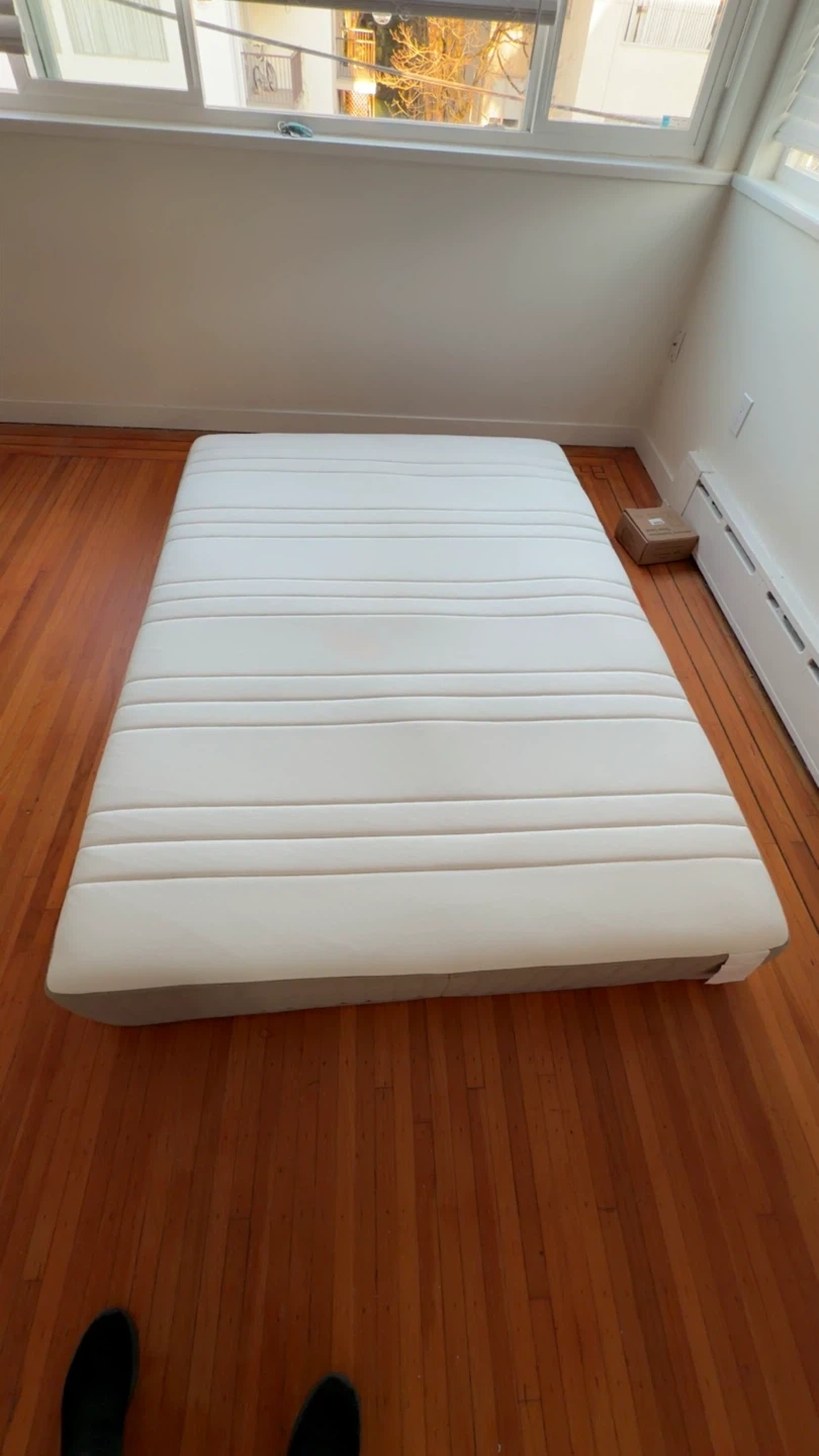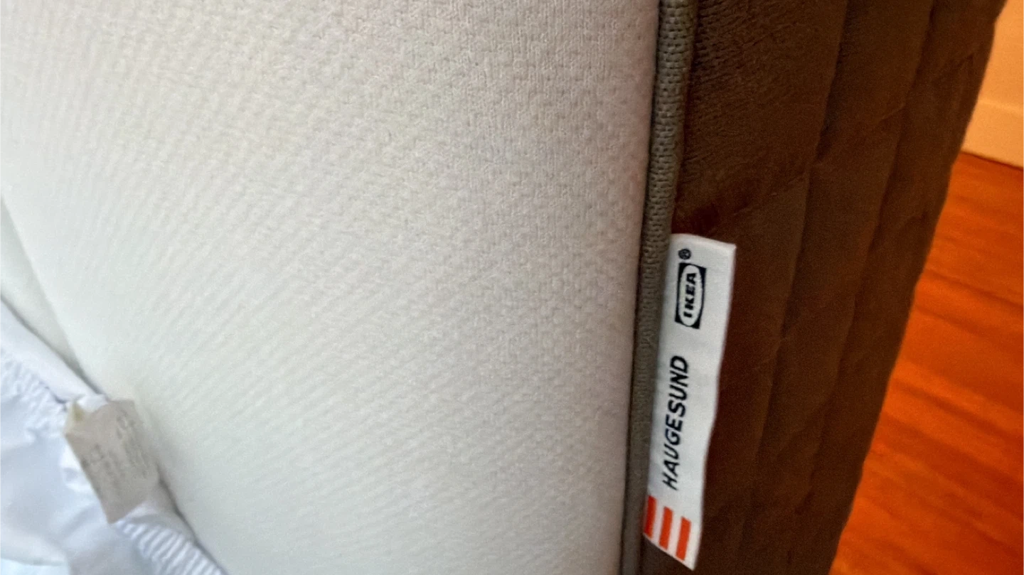 This IKEA HAUGESUND mattress is made with polyurethane foam and polyester fiber. It was manufactured on April 3, 2023. It's a comfortable option for a good night's sleep.