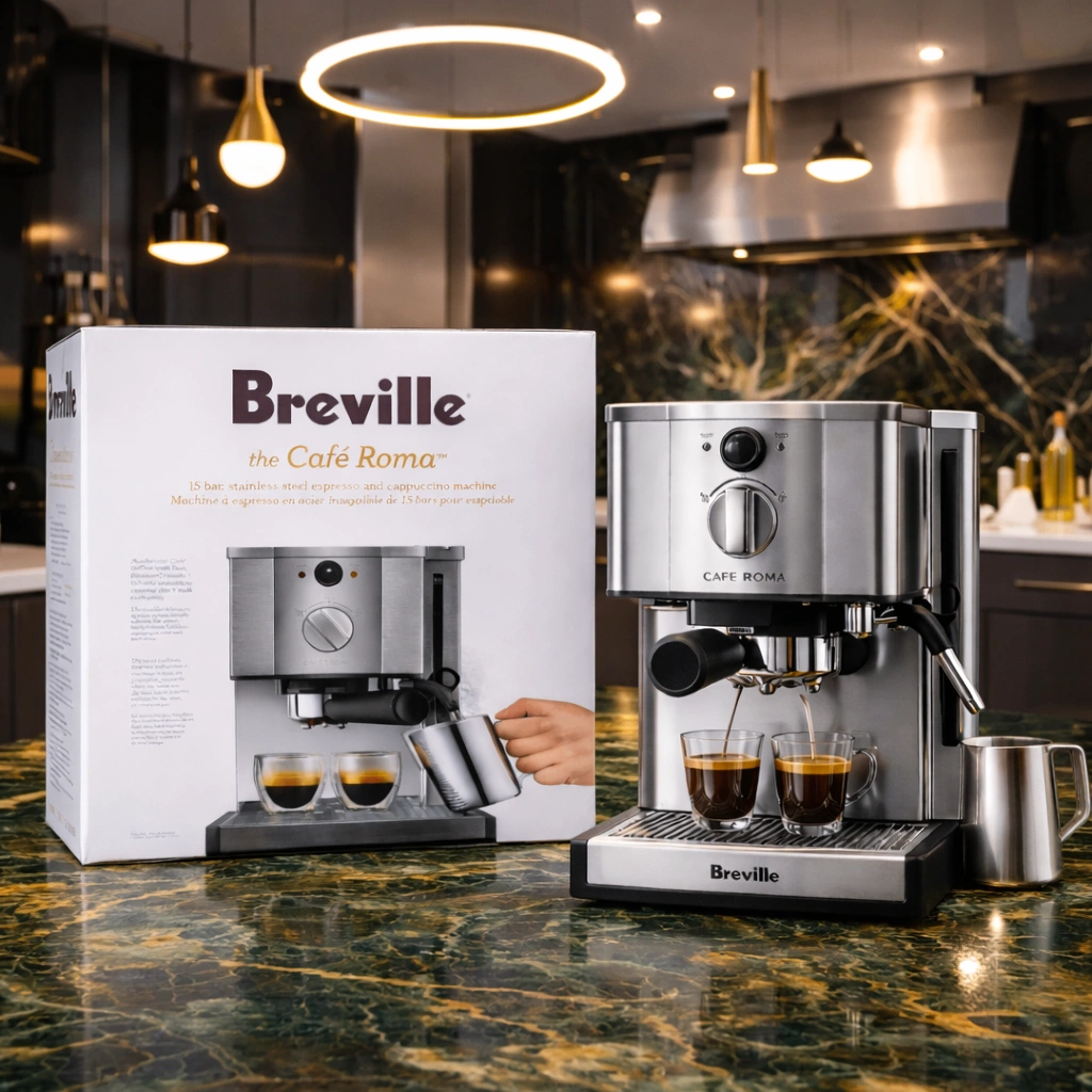 Retail Price $282- Breville CaféTM Roma Espresso Machine with Stainless Steel Finish