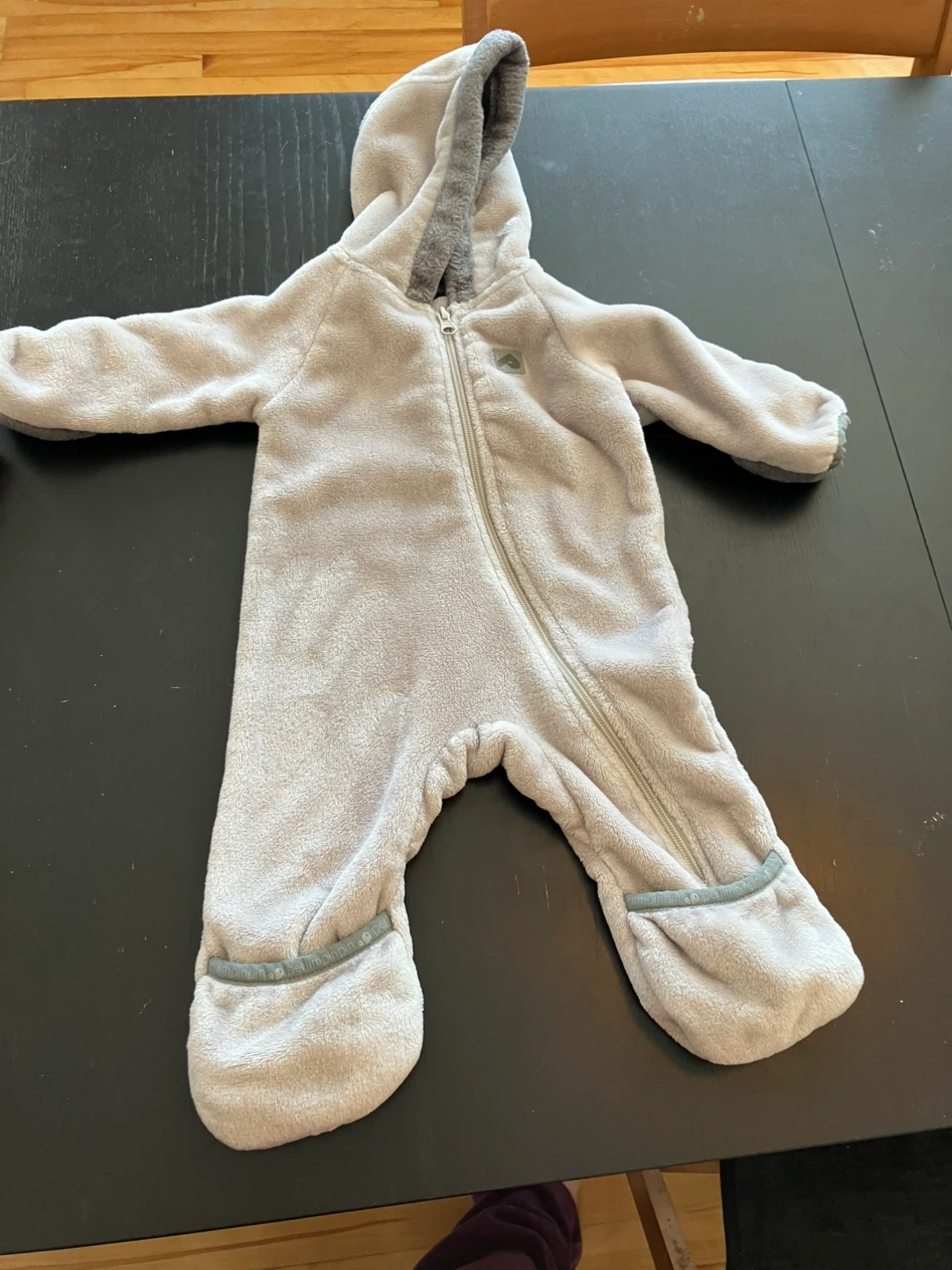 Super soft and cozy fleece snowsuit for your little one. It features a full zipper for easy on and off. The built-in footies keep tiny toes warm.