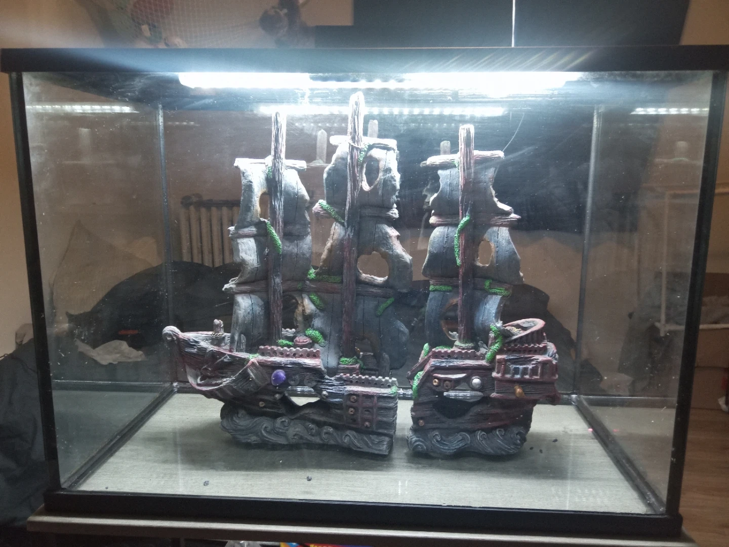 Aquarium with Ship Decorations