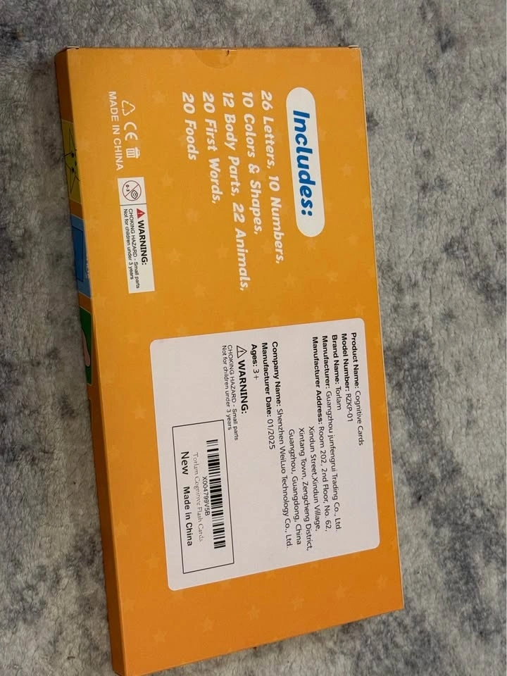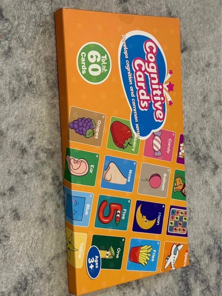Colorful learning flashcards for toddlers and kids. This set has 60 cards total. It includes categories like alphabet, numbers, colors & shapes, animals, first words, body parts, and foods. Cards are about 10cm x 12.5cm (3.9in x 4.9in). Comes with rings to keep them organized. Great for enhancing cognitive abilities and memory. I have 3 sealed sets available. Box condition: giftable. Pick up from Etobicoke or downtown Union Station.