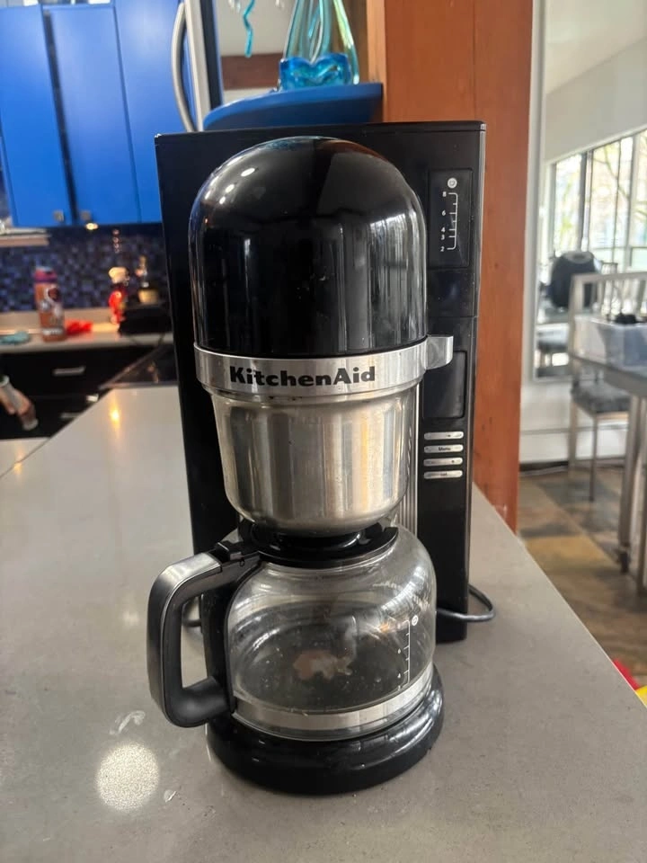 Elevate your morning ritual with the KitchenAid Pour Over Coffee Brewer. This brewer is specifically designed to mimic the manual pour-over process, automatically controlling the temperature and saturation to bring out the full flavor profile of your favorite beans. It delivers the precise, nuanced flavor of a manual pour-over without the effort, heating water to the ideal range for consistent, balanced extraction. It has a sleek, professional-grade aesthetic and a simple, one-touch operation. This machine is in great working condition and consistently makes an excellent cup of coffee. Please note there is a small chip in the paint on the base; this is purely cosmetic and does not affect the performance or the brewing function of the machine in any way.