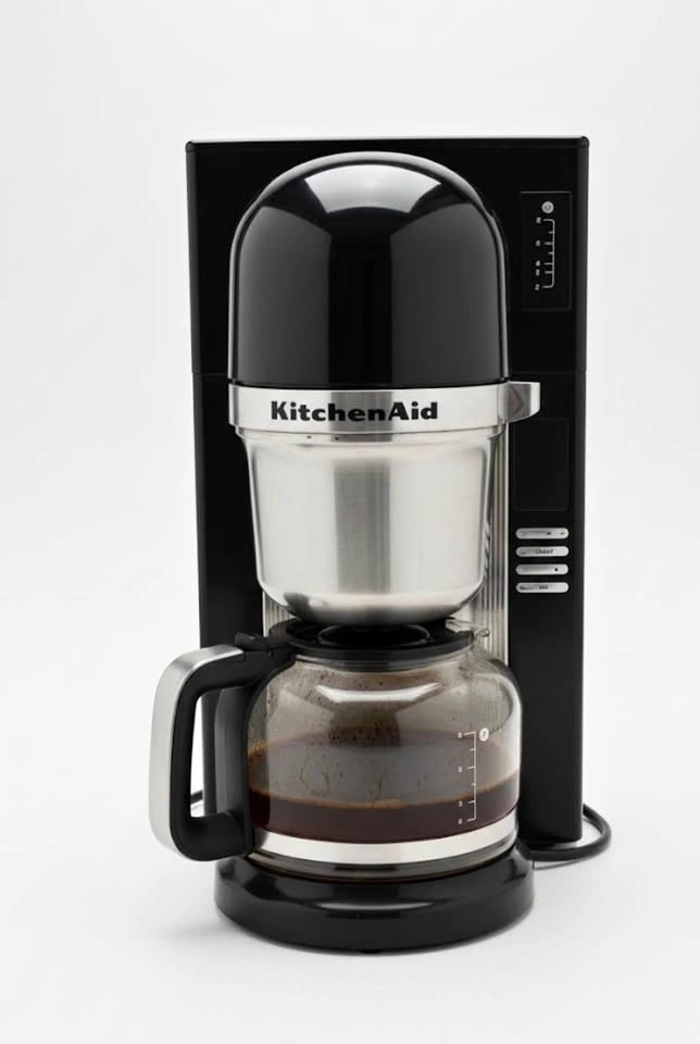 Elevate your morning ritual with the KitchenAid Pour Over Coffee Brewer. This brewer is specifically designed to mimic the manual pour-over process, automatically controlling the temperature and saturation to bring out the full flavor profile of your favorite beans. It delivers the precise, nuanced flavor of a manual pour-over without the effort, heating water to the ideal range for consistent, balanced extraction. It has a sleek, professional-grade aesthetic and a simple, one-touch operation. This machine is in great working condition and consistently makes an excellent cup of coffee. Please note there is a small chip in the paint on the base; this is purely cosmetic and does not affect the performance or the brewing function of the machine in any way.
