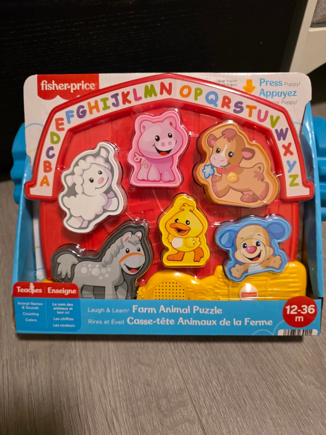 This is a Fisher-Price Laugh & Learn Farm Animal Puzzle, perfect for little ones aged 12-36 months! It teaches: