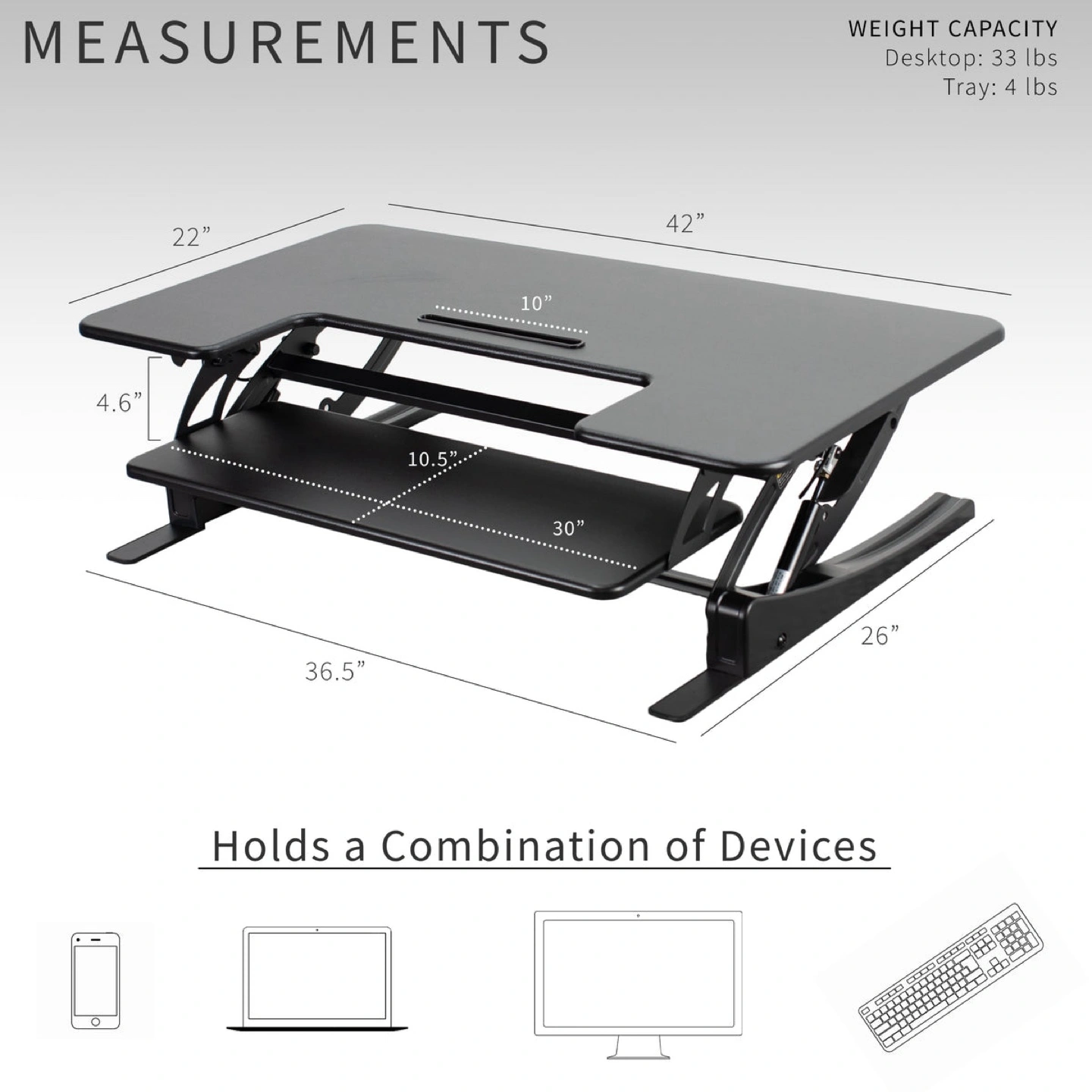 - Desktop weight capacity: 33 lbs