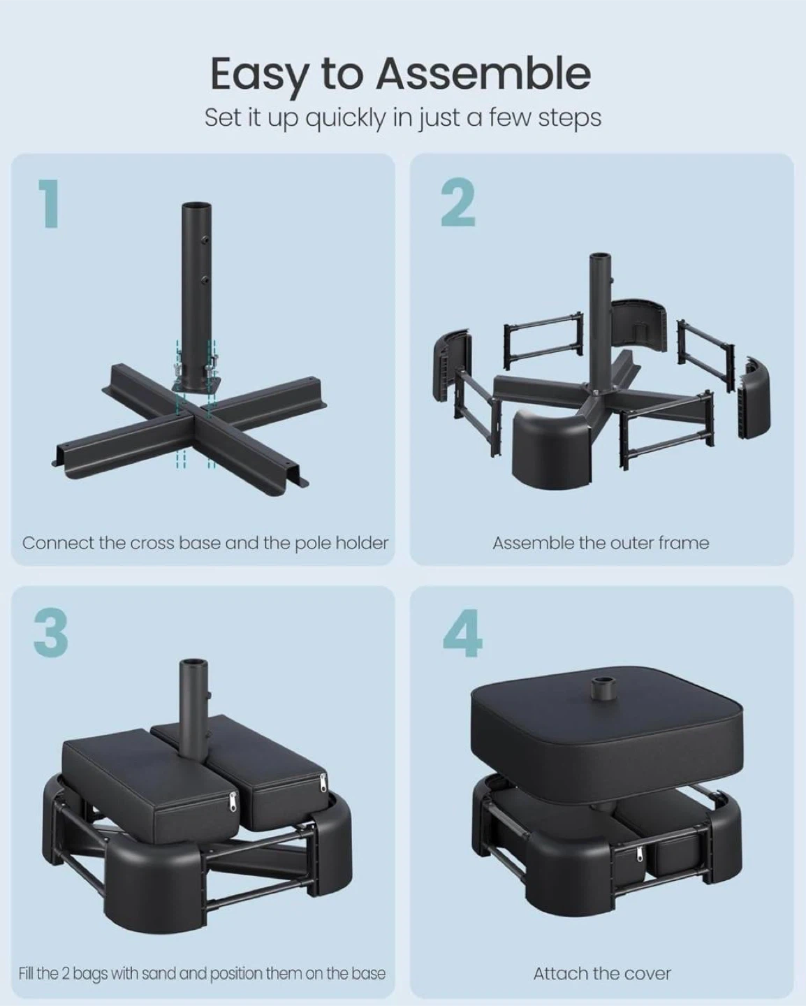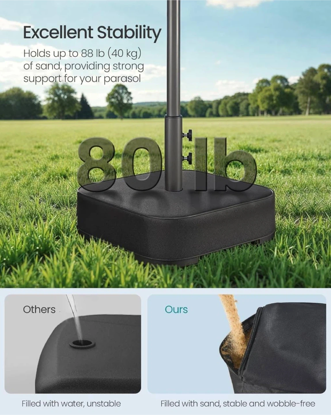 Lightweight to carry, strong when filled — this SONGMICS umbrella base is a perfect practical solution for your patio, backyard, or even beach days. Easy to set up and store, yet sturdy enough to keep your umbrella stable.
