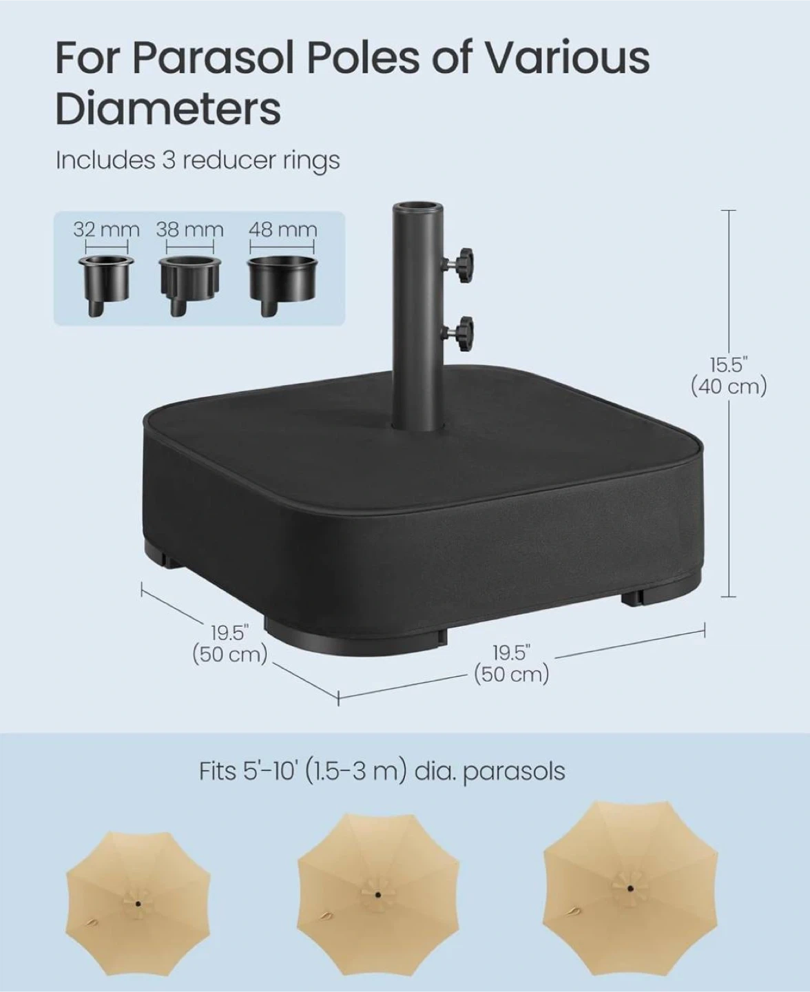Lightweight to carry, strong when filled — this SONGMICS umbrella base is a perfect practical solution for your patio, backyard, or even beach days. Easy to set up and store, yet sturdy enough to keep your umbrella stable.